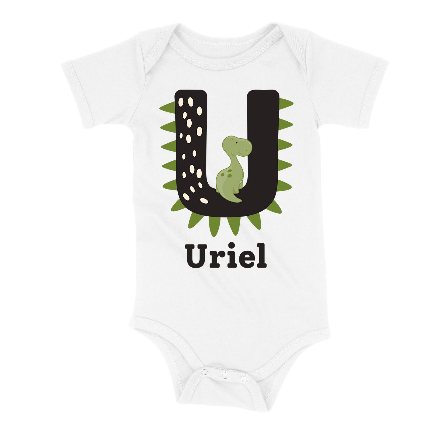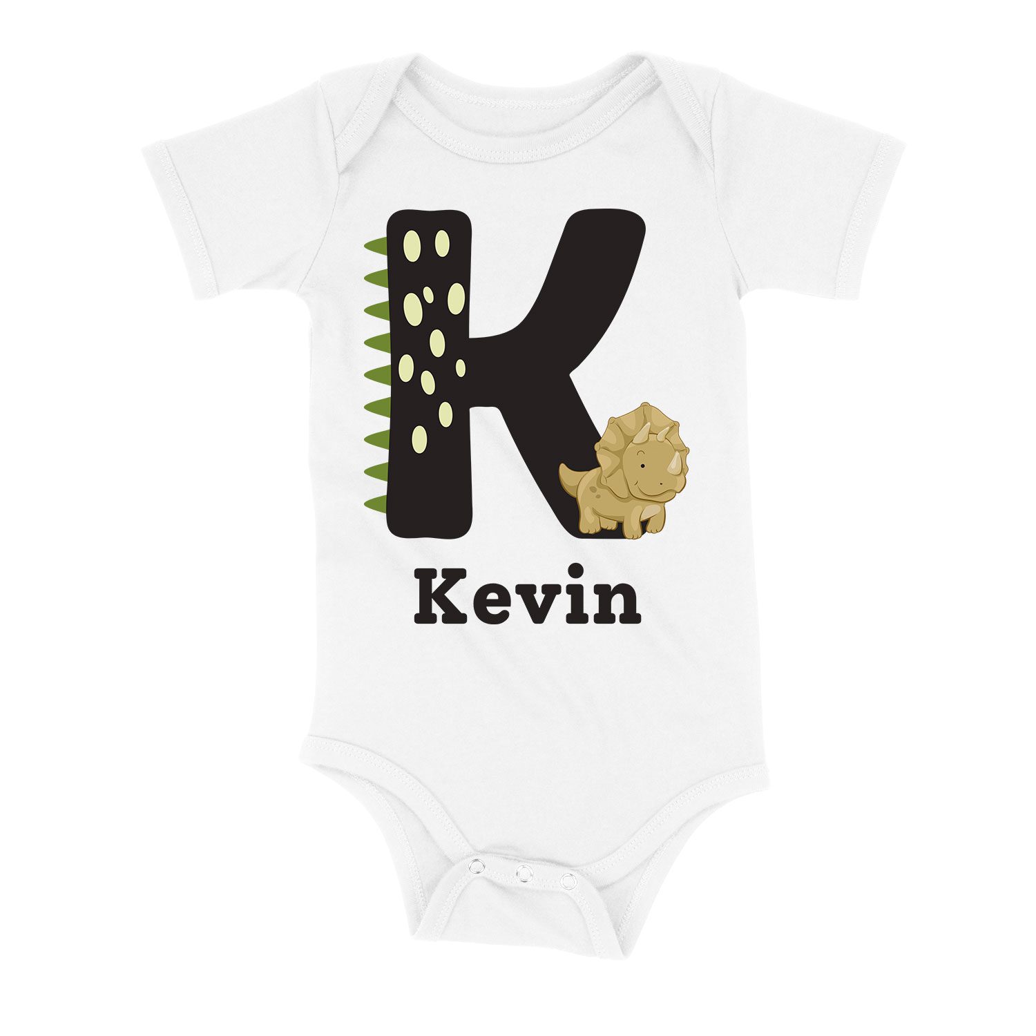 Personalized, Name, Infant, Dino, Alphabet, Tee, Custom, Initial, T-Shirt, with, Adorable, Dinosaur, Design: