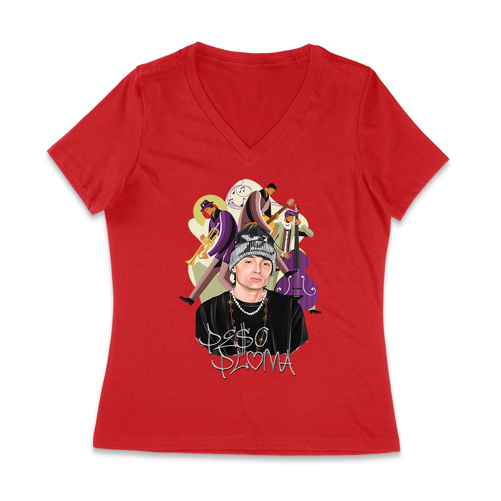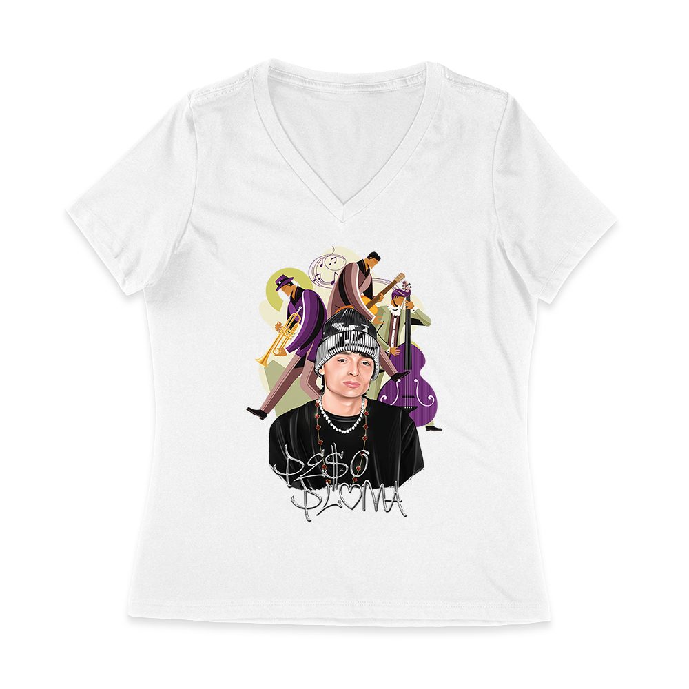 Peso-Pluma Banda Graphic T-Shirt ? Latin Trio with Trumpet, Guitar & Double Bass ? Musical Art Tee Women Jersey V-Neck