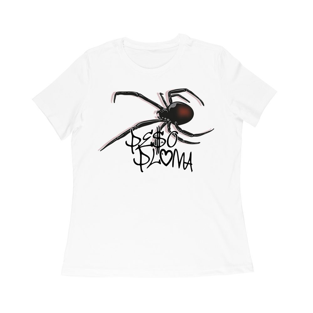 Peso-Pluma Graphic Tee – Bold Design Featuring Artist Name and Iconic Spider Tattoo Women Relaxed