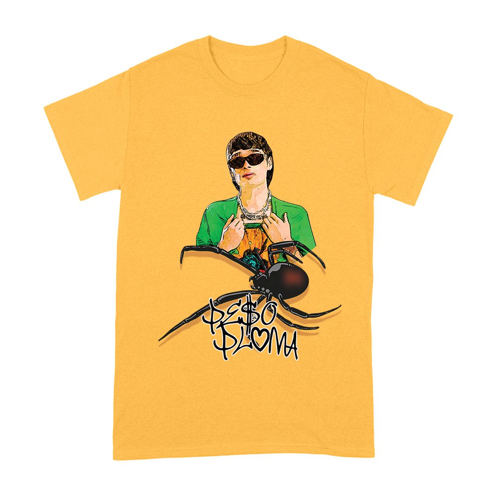 Peso-Pluma image shirt; spider tattoo graphic tee; Latin music artist design; Peso-Pluma fan apparel; urban regional Mexican tee; bold artist name shirt; Peso-Pluma tattoo and photo tee; music icon t-shirt; Latin pop visual shirt; fan favorite design — perfect for birthdays, parties, and celebrations.