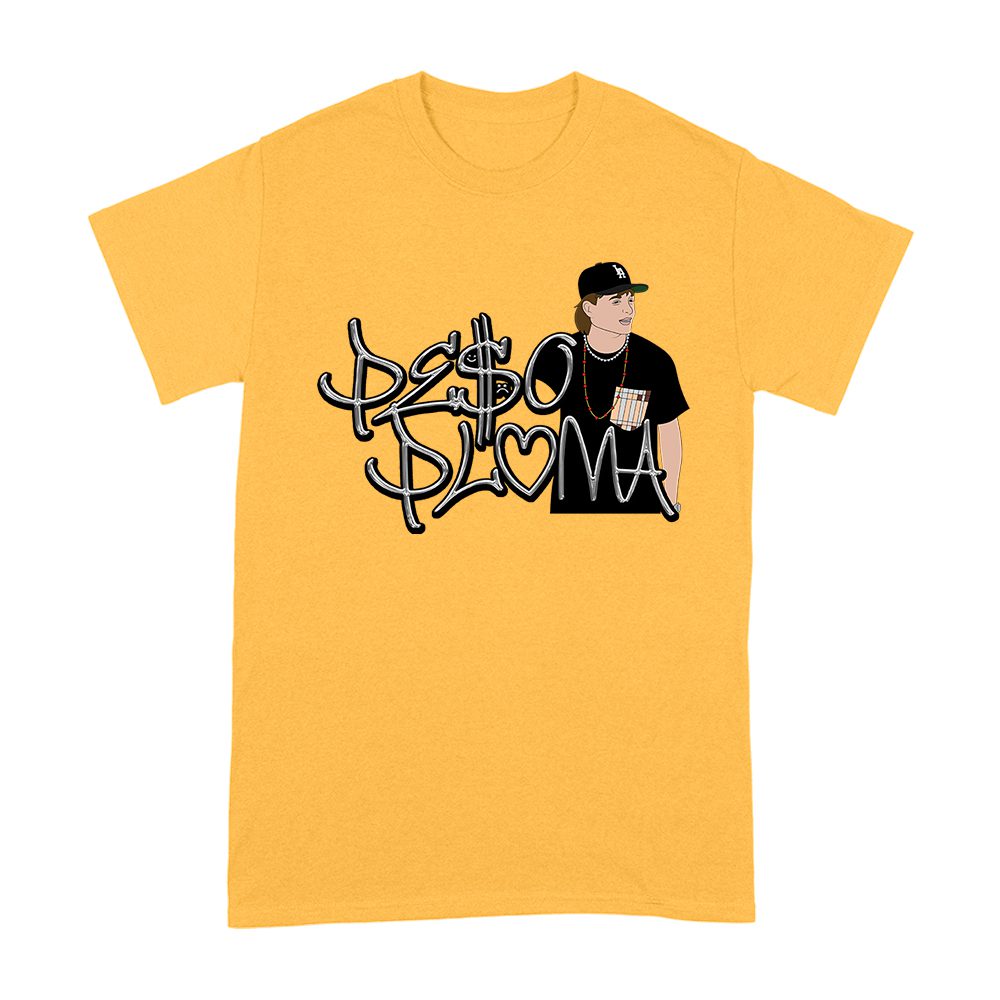 Peso-Pluma shirt; silvery text Latin tee; Peso-Pluma merch; urban Latino fashion; regional Mexican singer shirt; LaDobleP fan t-shirt; shiny lettering music tee; corridos tumbados apparel; Latin music graphic tee; Peso-Pluma graphic shirt — perfect for birthdays, parties, and celebrations.