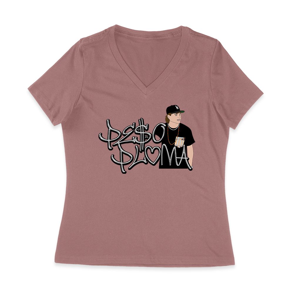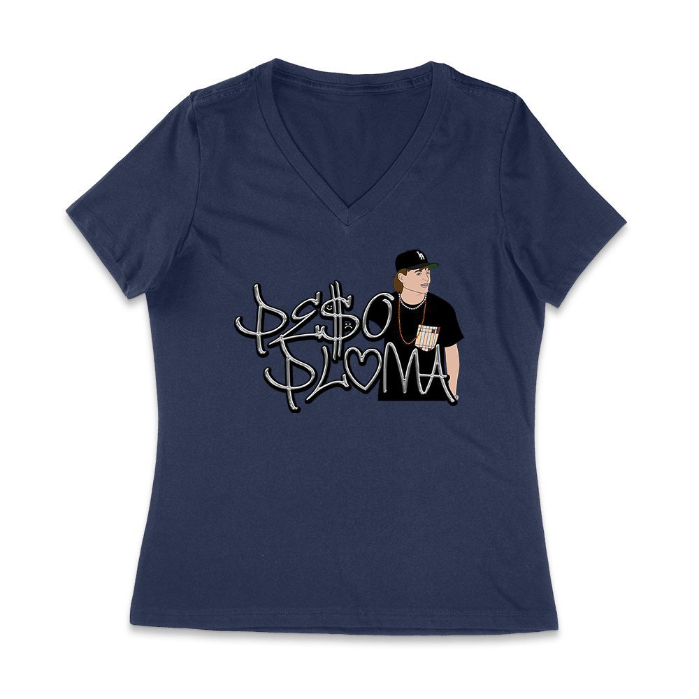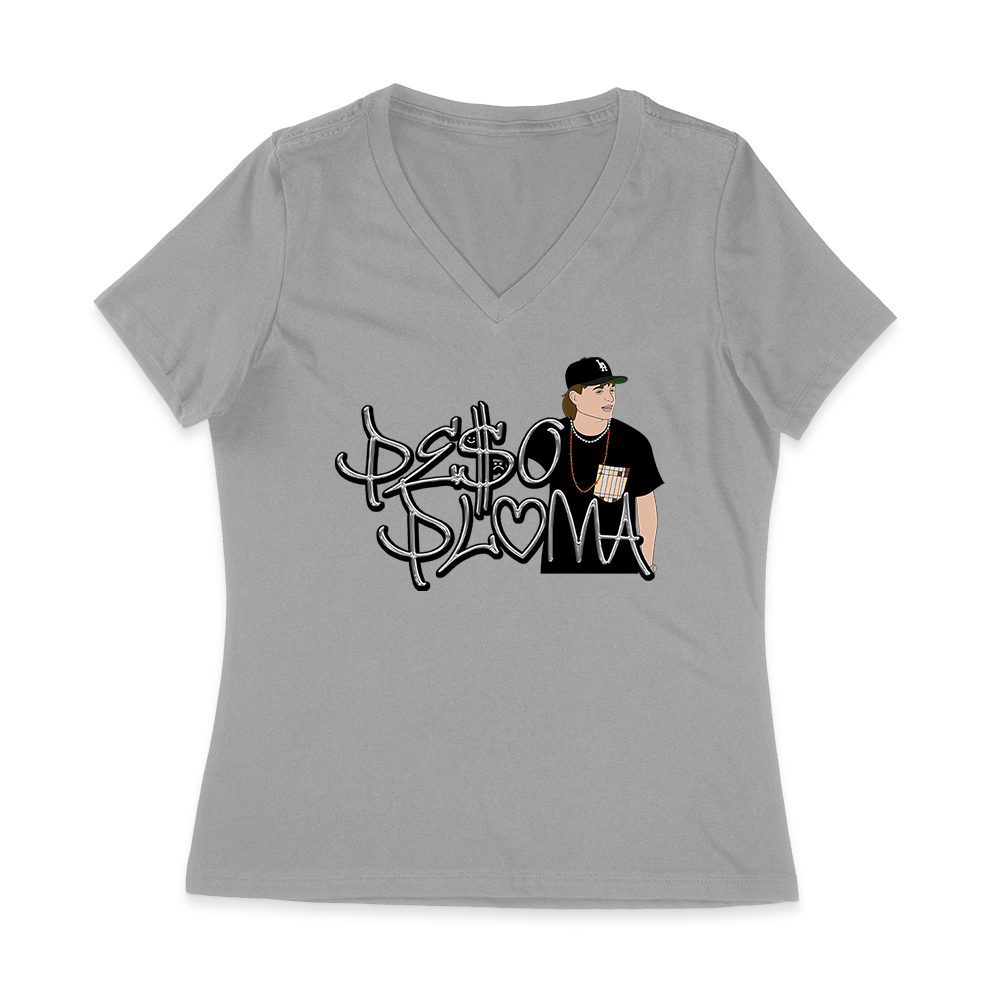 Peso-Pluma Silvery Letters Graphic Tee ? Shiny Urban Latin Music Shirt for Stylish Fans Women Jersey V-Neck
