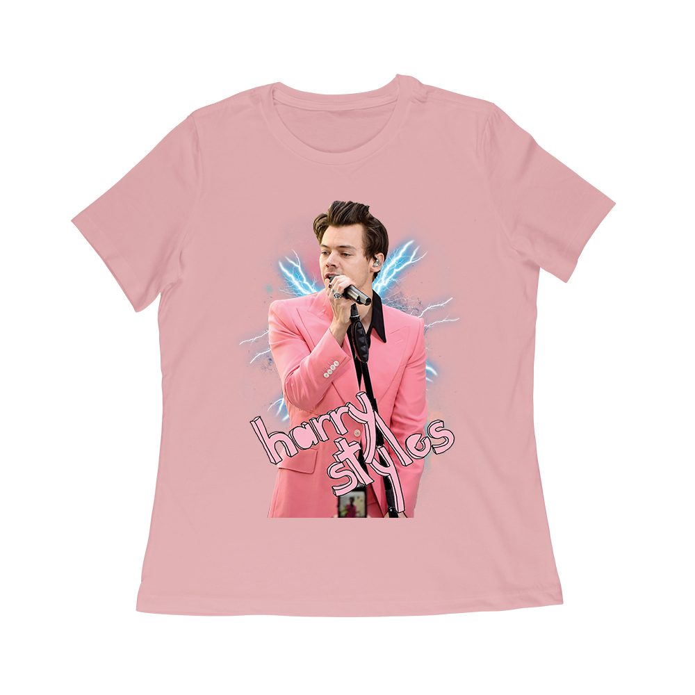 Pink Suit Performance Hary-Styls T-Shirt with Microphone Graphic Women Relaxed