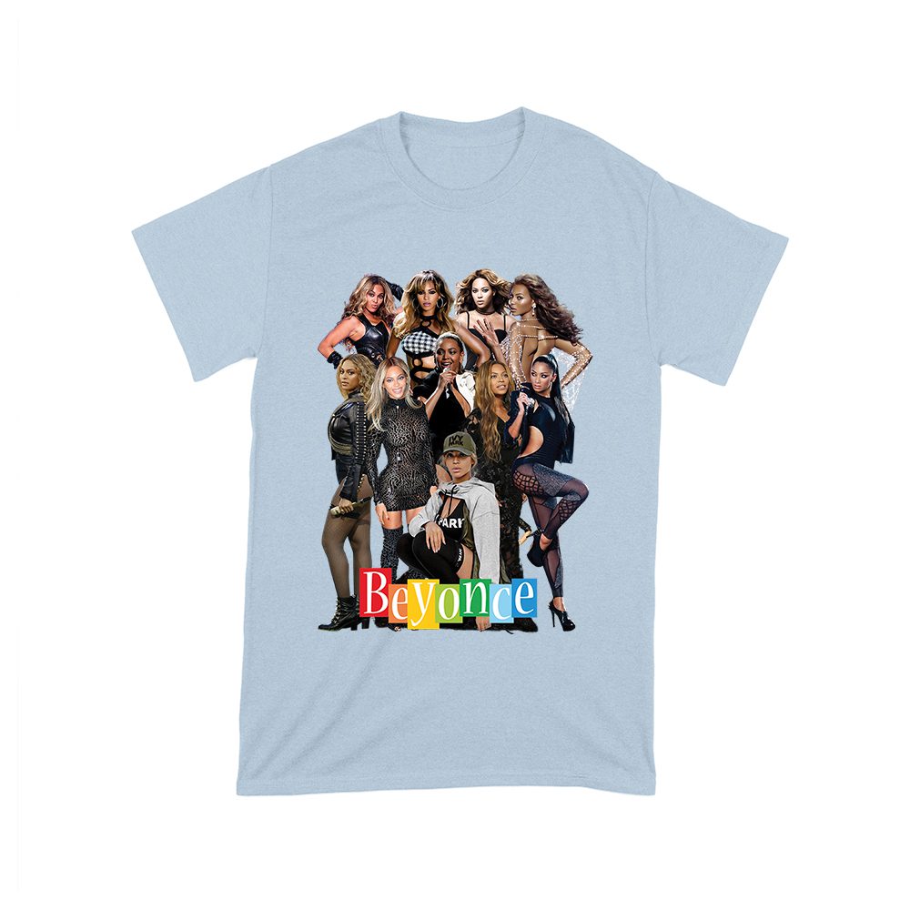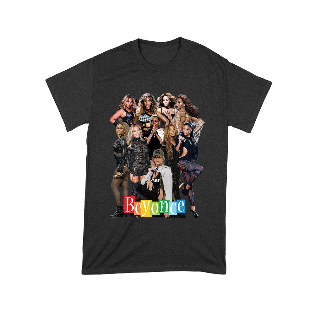 Beyonce group photo tee; fashion queen collage shirt; diva attitude pop star tee; Beyonc? multistyle outfit design; bold graphic T-shirt; pop star tribute top — perfect for birthdays, parties, and celebrations.