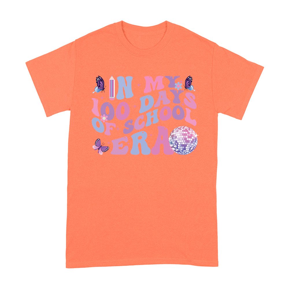 100 days of school, retro school shirt, butterfly disco shirt, colorful school shirt, 100 days era tee, teacher celebration shirt, kids milestone shirt, disco-themed t-shirt, school event apparel, retro milestone tee: