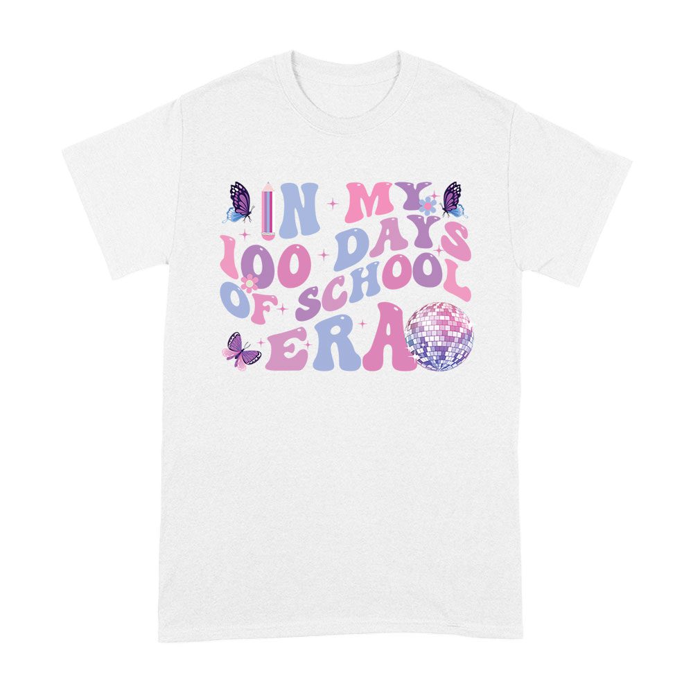 Retro 100 Days of School T-Shirt for Kids and Teachers – Colorful Butterfly Disco Era