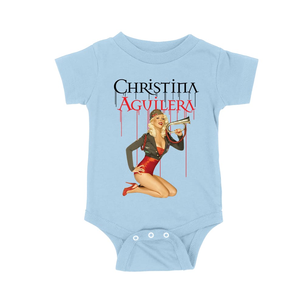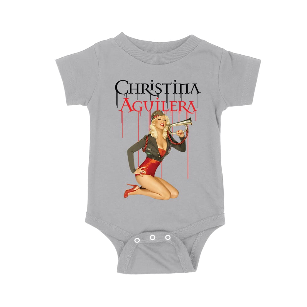 Retro Pin-Up Style Christina Aguilera T-Shirt with Red Microphone Pose Unisex Baby Jersey