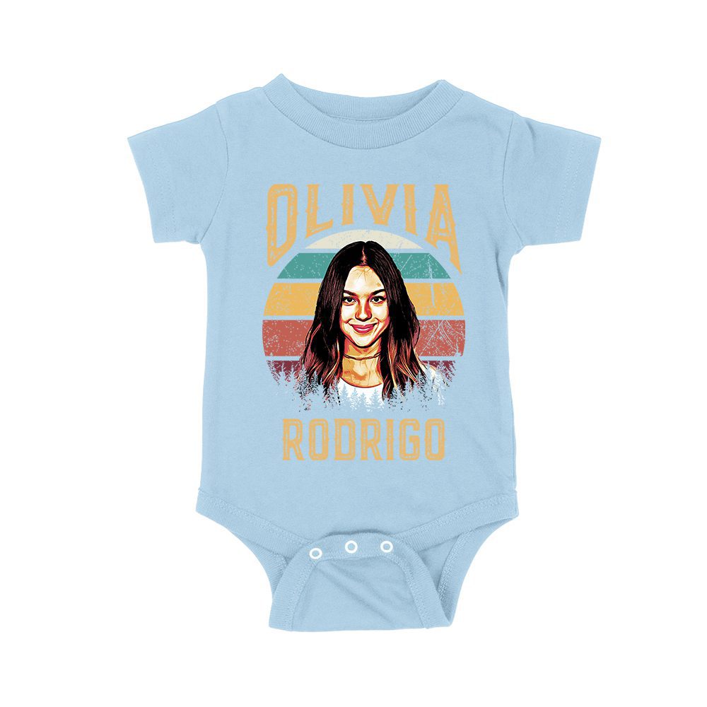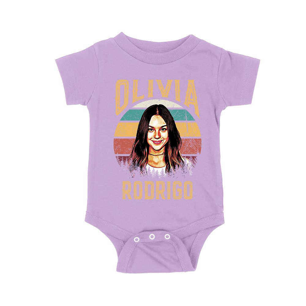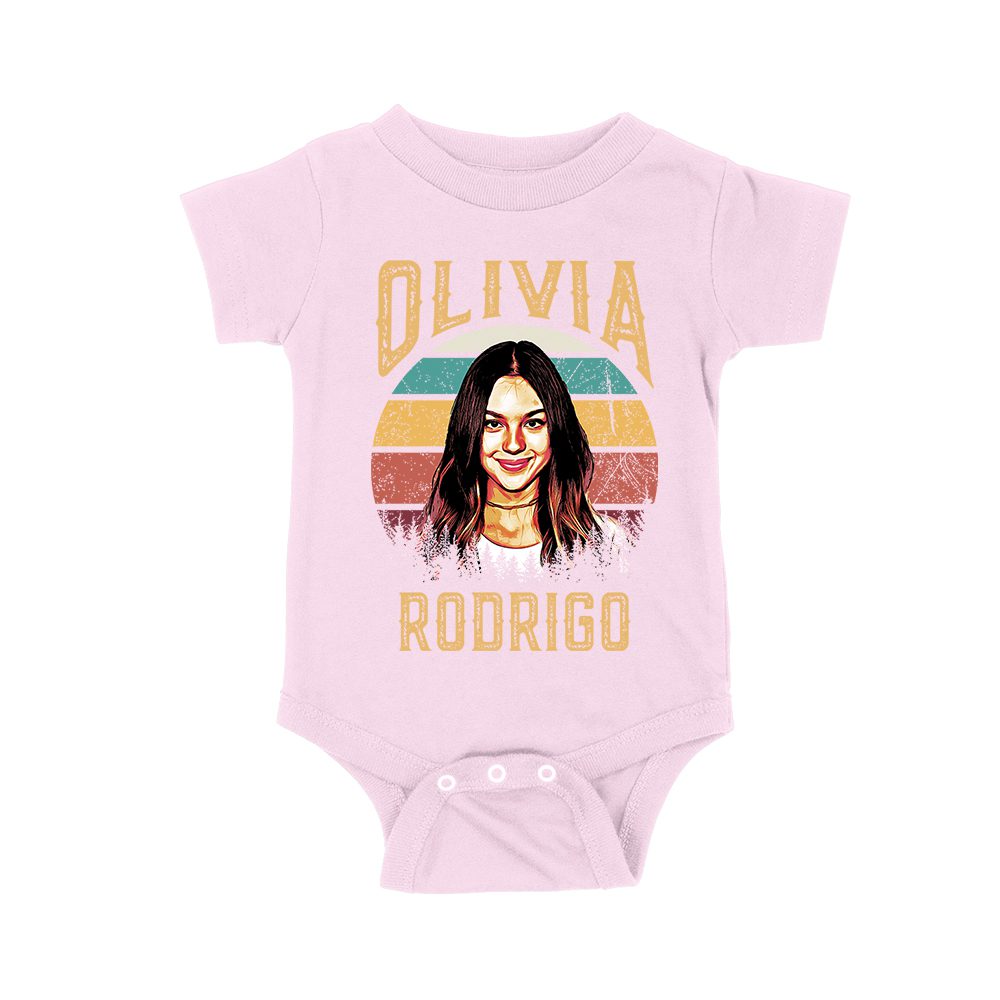 Retro Sunset Stripes Olivia Rodrigo Graphic Tee with Vintage Portrait Unisex Baby Jersey