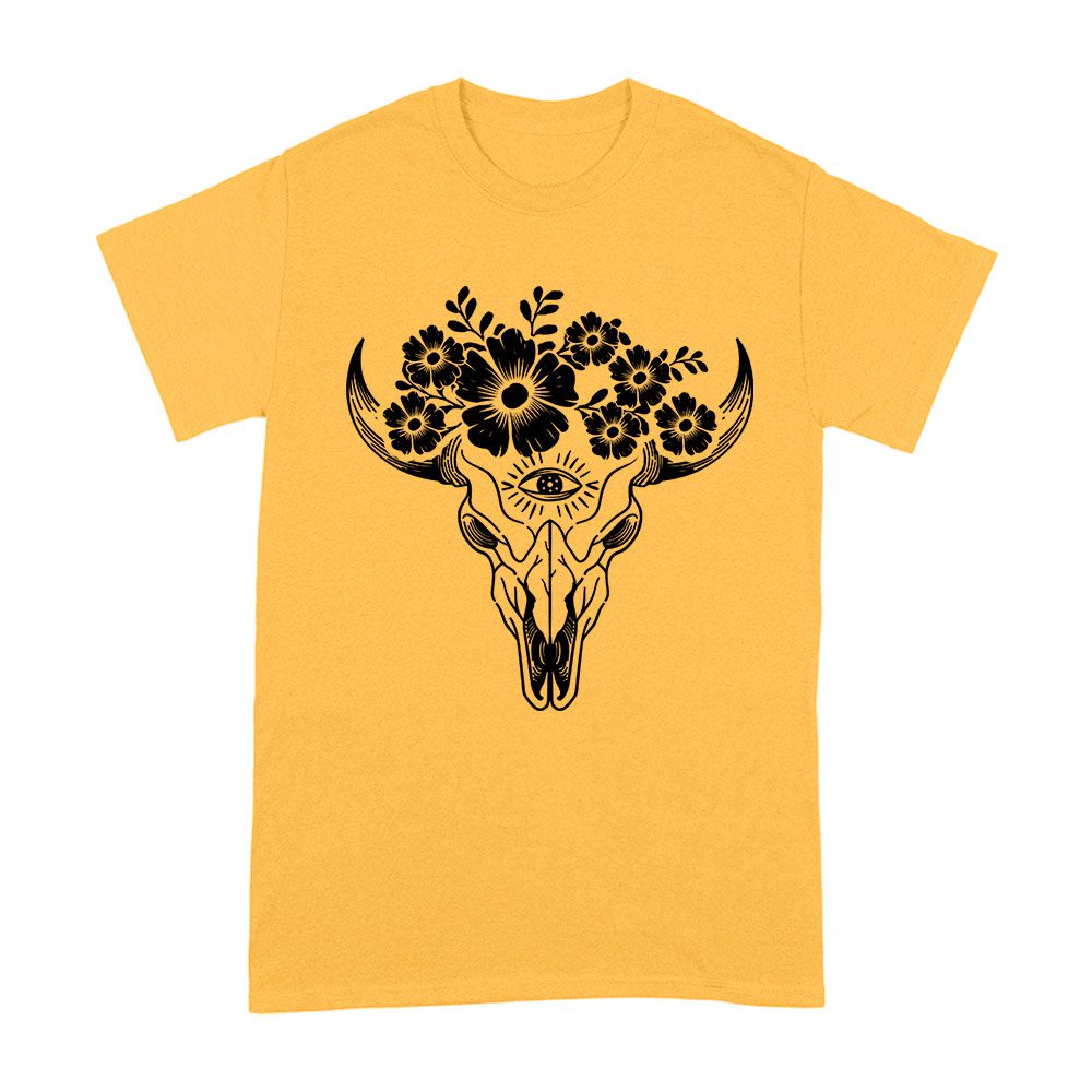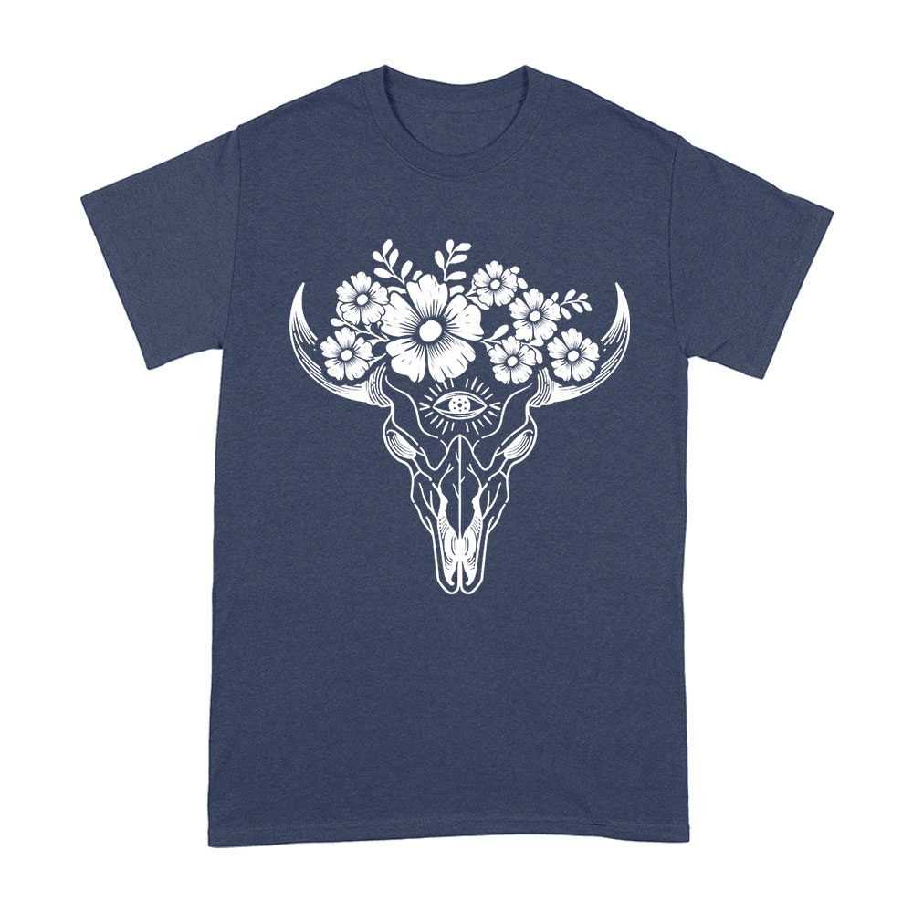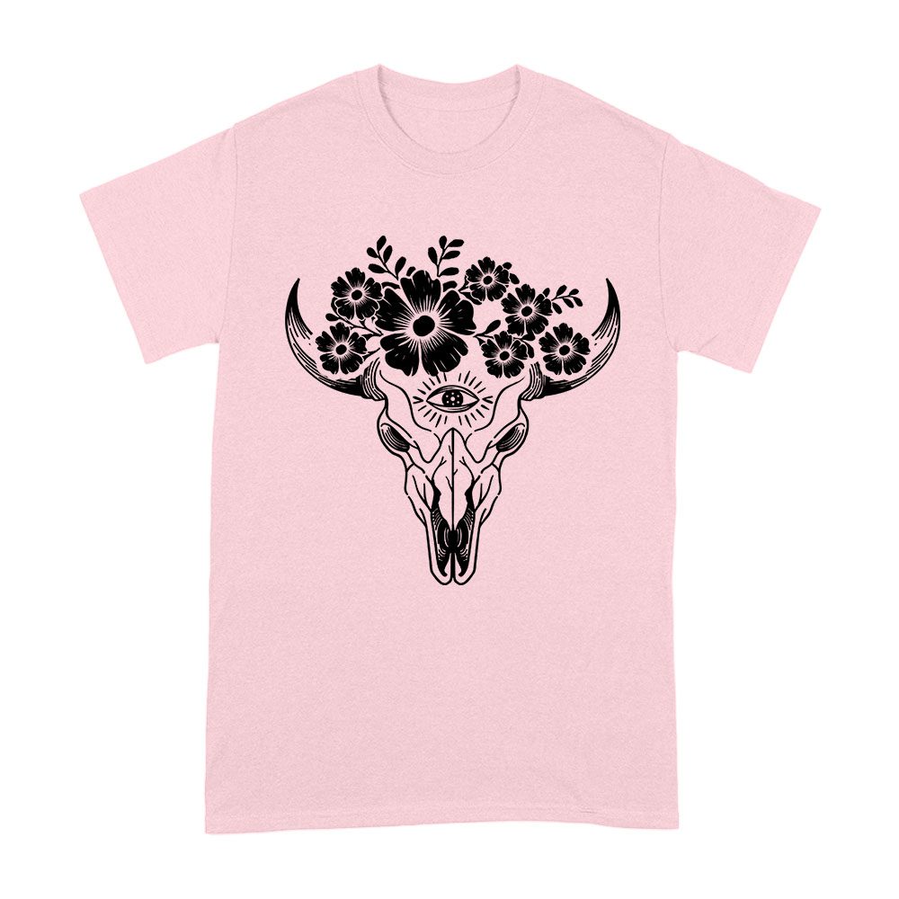 Rodeo Cow Skull T-Shirt – Western Floral Skull Graphic Tee – Vintage Country Rodeo Shirt – Rustic Cowboy Cowgirl Outfit for Men & Women
