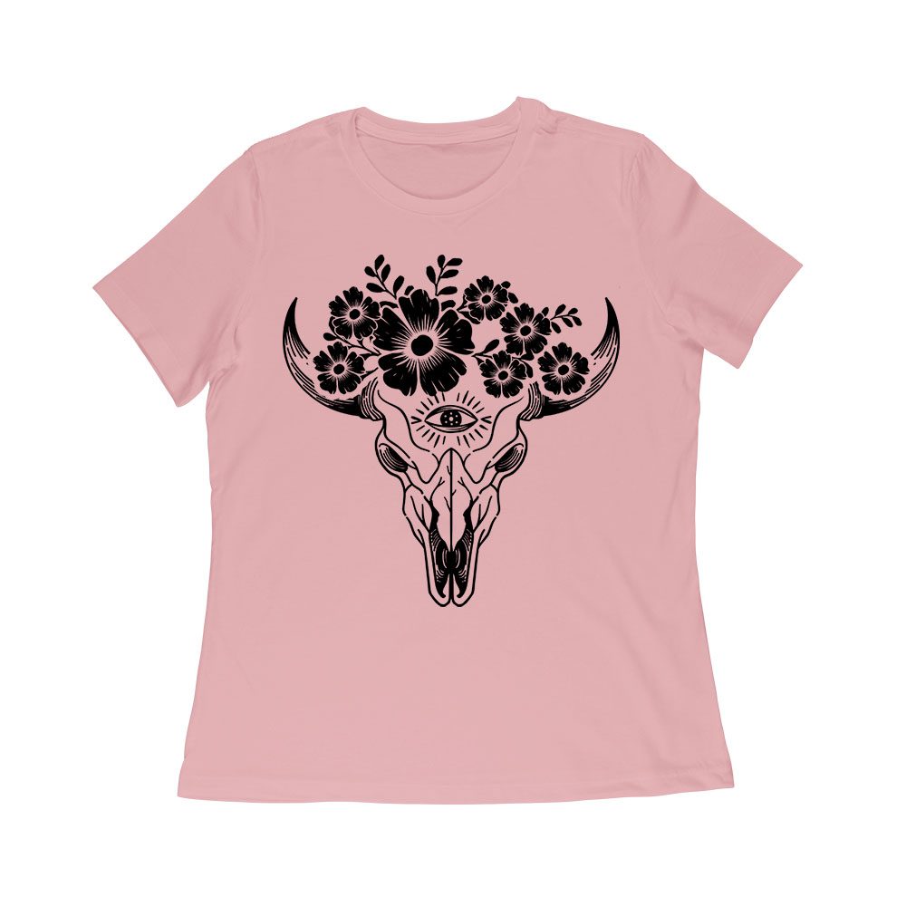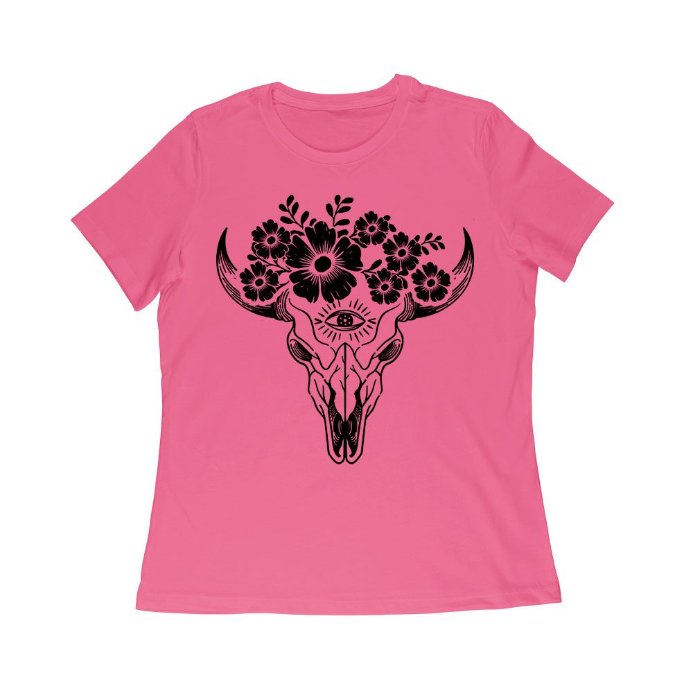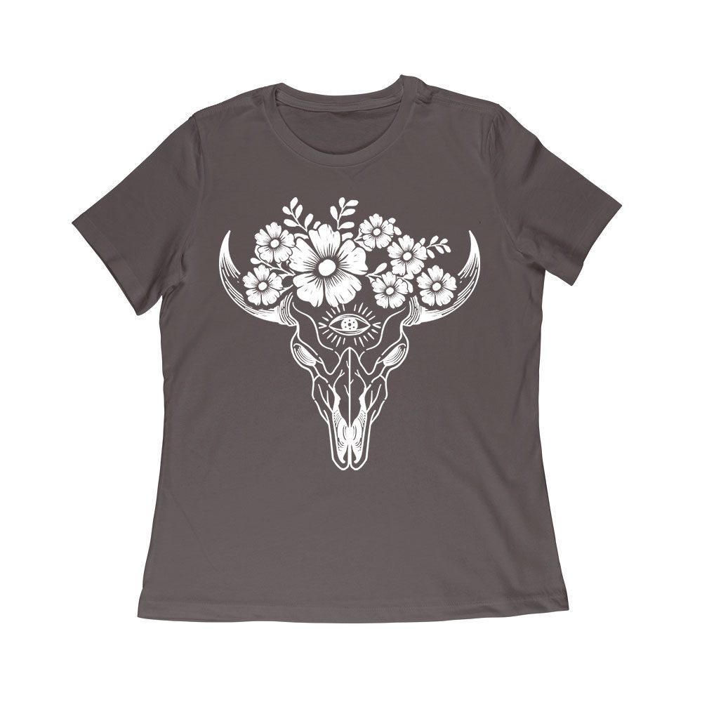 Rodeo Cow Skull T-Shirt – Western Floral Skull Graphic Tee – Vintage Country Rodeo Shirt – Rustic Cowboy Cowgirl Outfit for Men & Women Women Relaxed