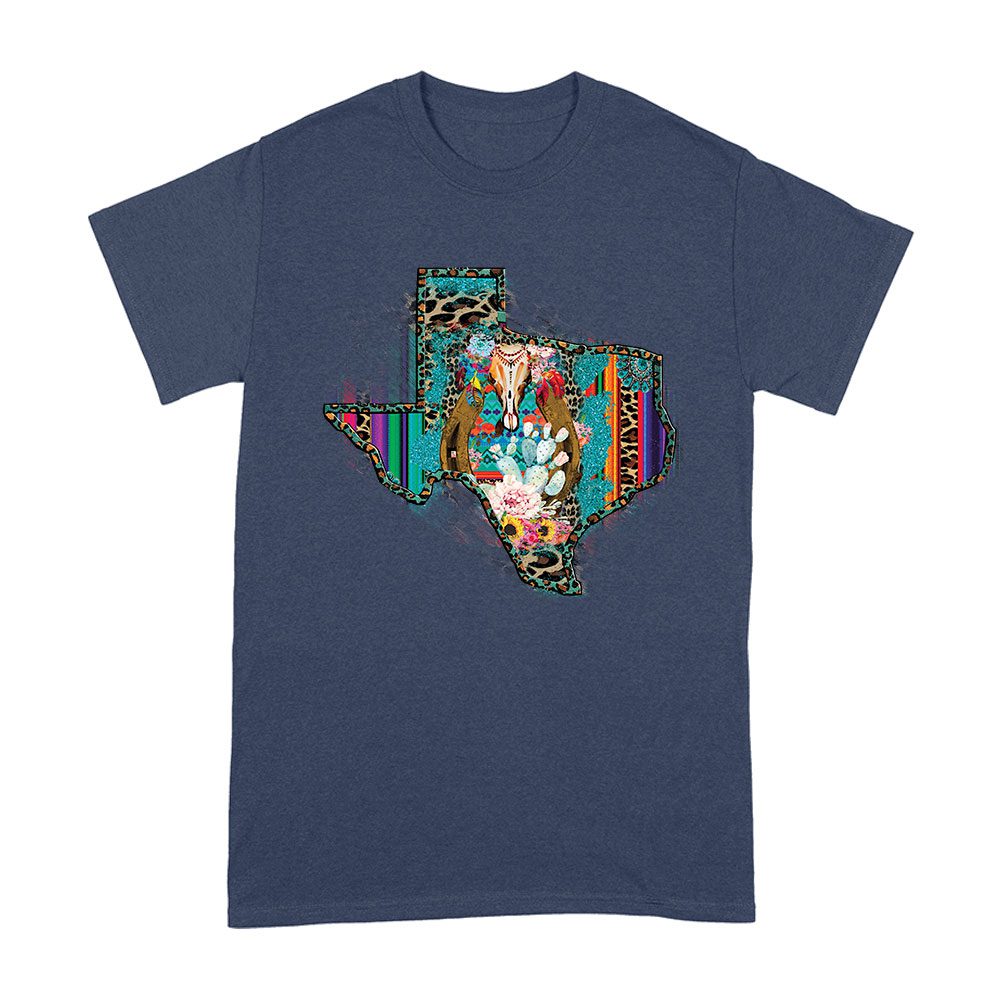 Rodeo Texas Map T-Shirt – Western Cowgirl & Cowboy Graphic Tee – Vintage Country Southwestern Shirt with Rustic Horse & Floral Design