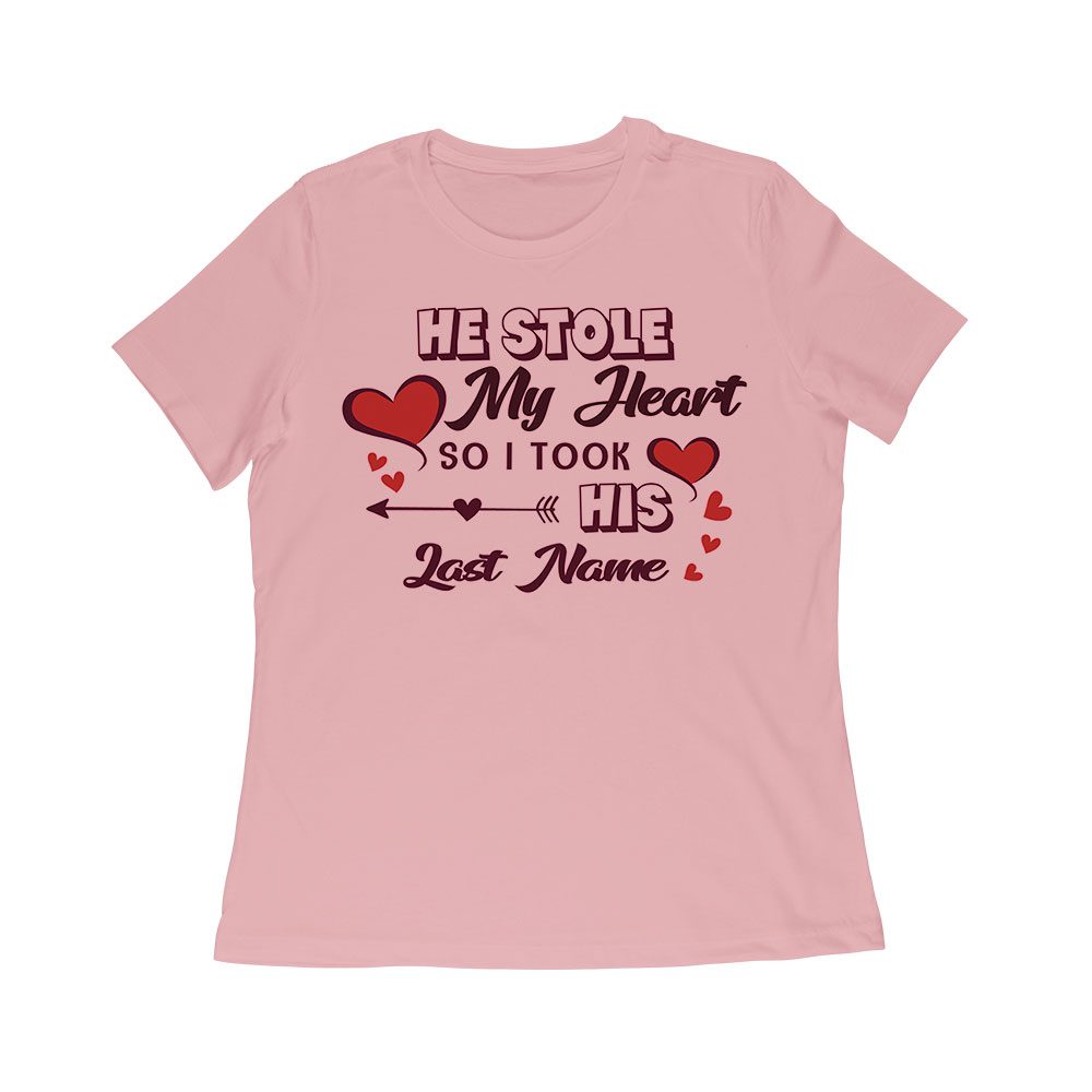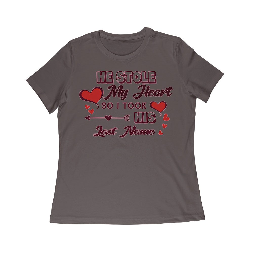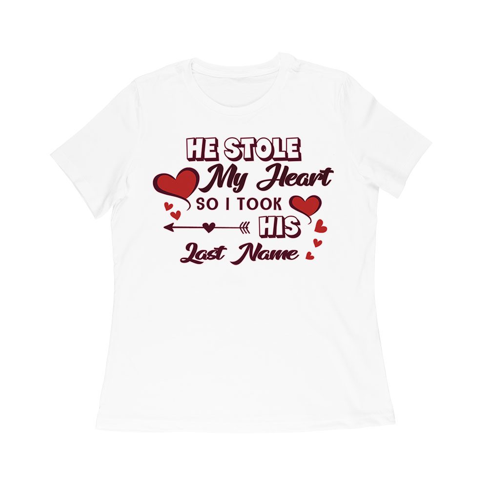 Romantic Valentine T-Shirt – He Stole My Heart So I Took His Last Name Design Women Relaxed