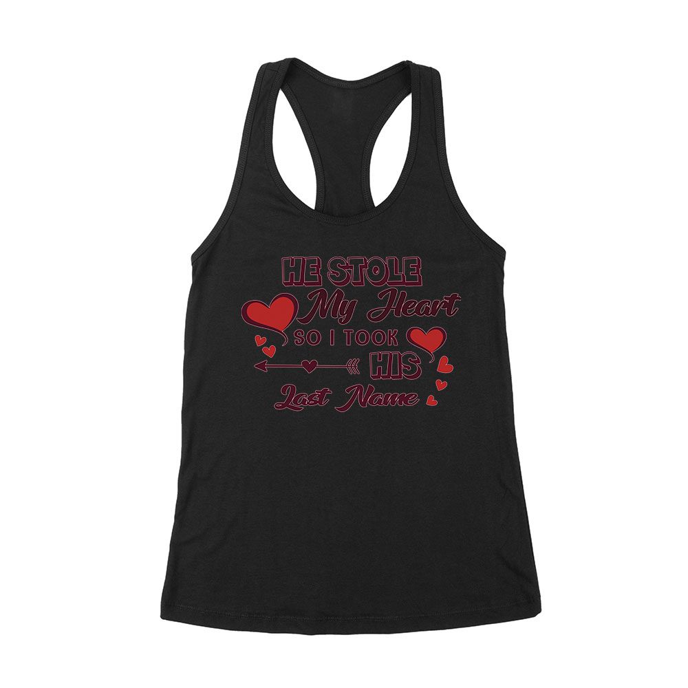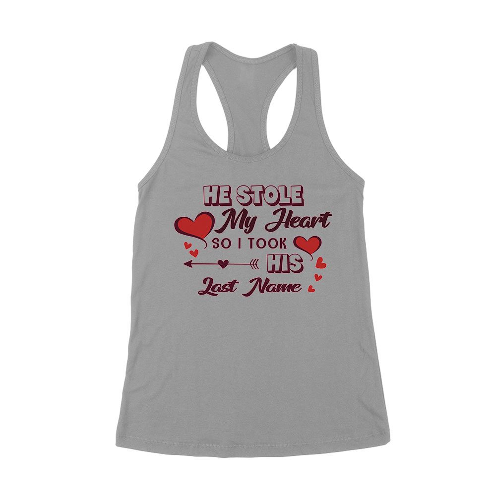 Romantic Valentine T-Shirt – He Stole My Heart So I Took His Last Name Design Women’s Racerback Tank Top