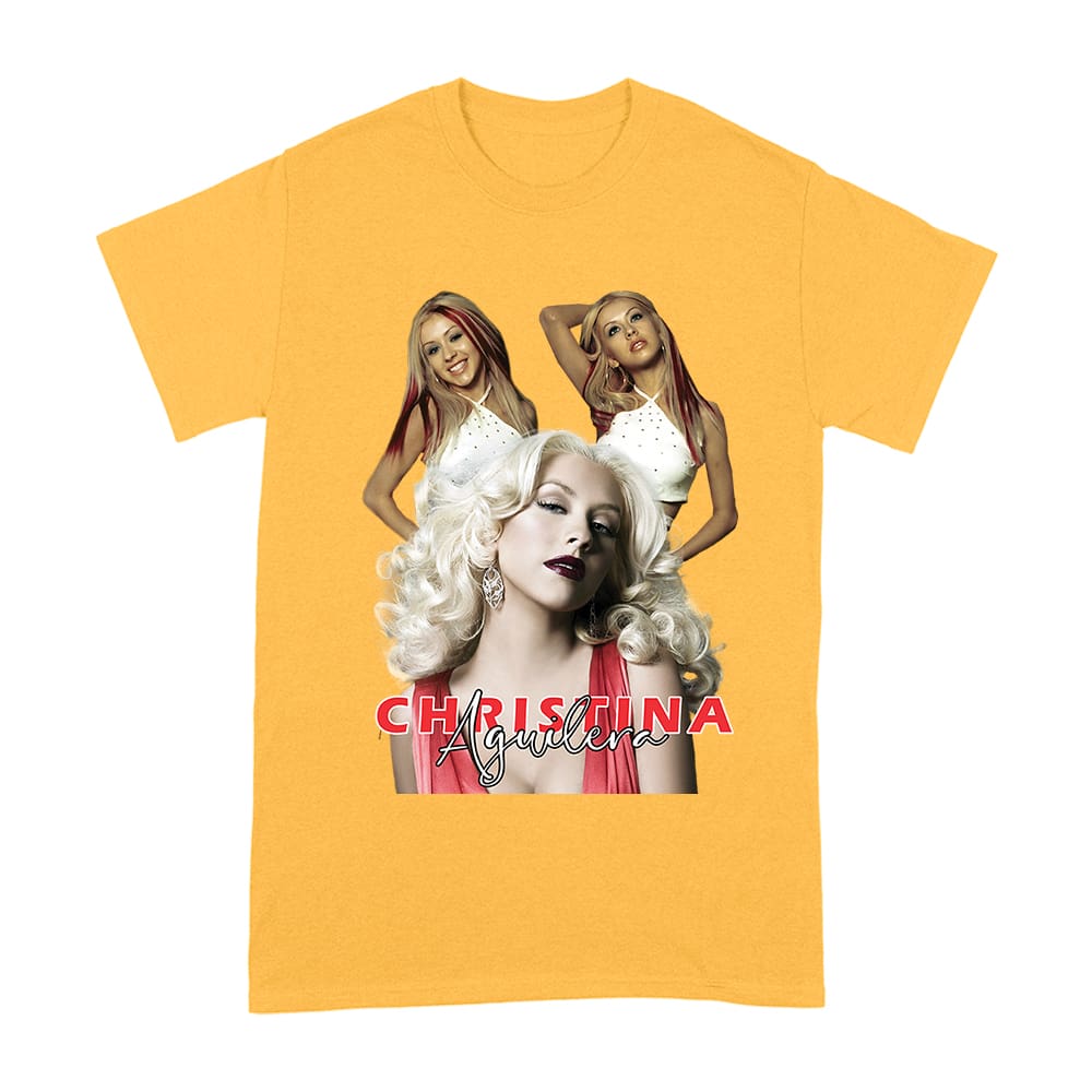Christina Aguilera red dress tee; fierce pop singer portrait shirt; confident fashion diva T-shirt; retro glam pose top; music icon graphic shirt; empowering style tee — perfect for birthdays, parties, and celebrations.