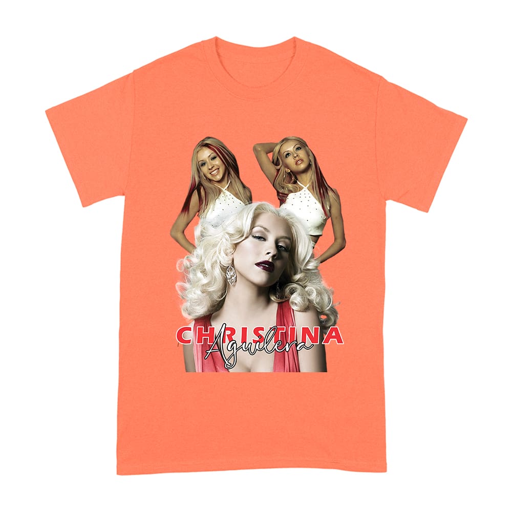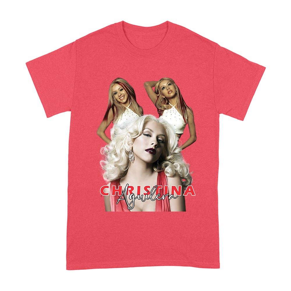 Christina Aguilera red dress tee; fierce pop singer portrait shirt; confident fashion diva T-shirt; retro glam pose top; music icon graphic shirt; empowering style tee: