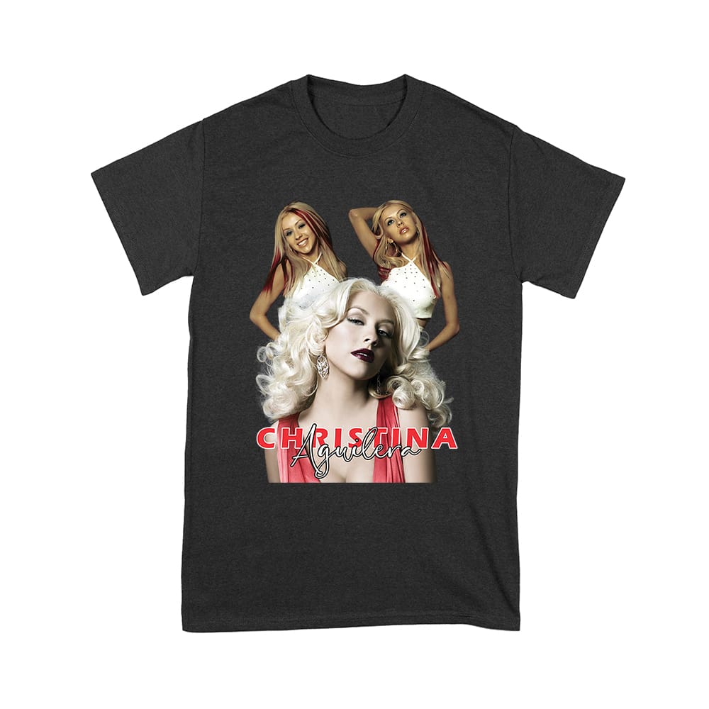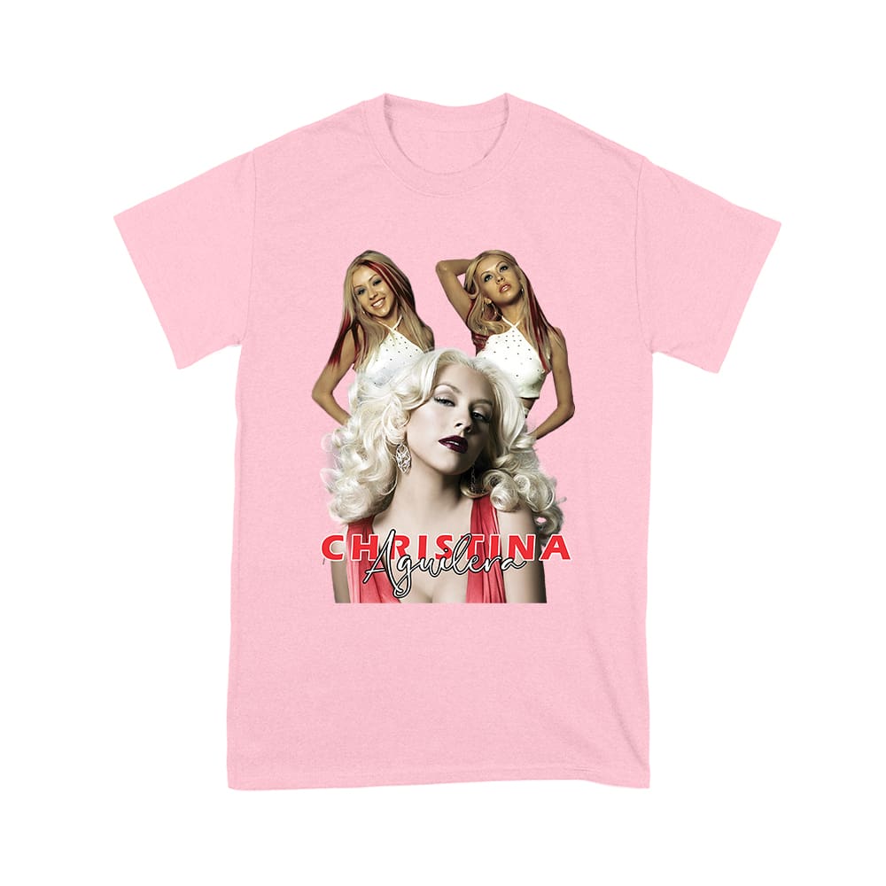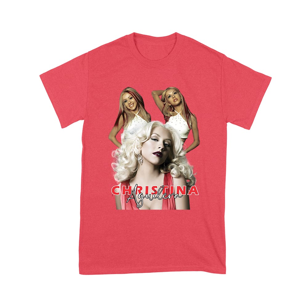 Christina Aguilera red dress tee; fierce pop singer portrait shirt; confident fashion diva T-shirt; retro glam pose top; music icon graphic shirt; empowering style tee: