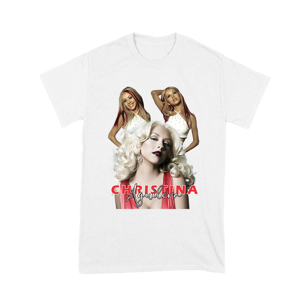 Christina Aguilera red dress tee; fierce pop singer portrait shirt; confident fashion diva T-shirt; retro glam pose top; music icon graphic shirt; empowering style tee — perfect for birthdays, parties, and celebrations.