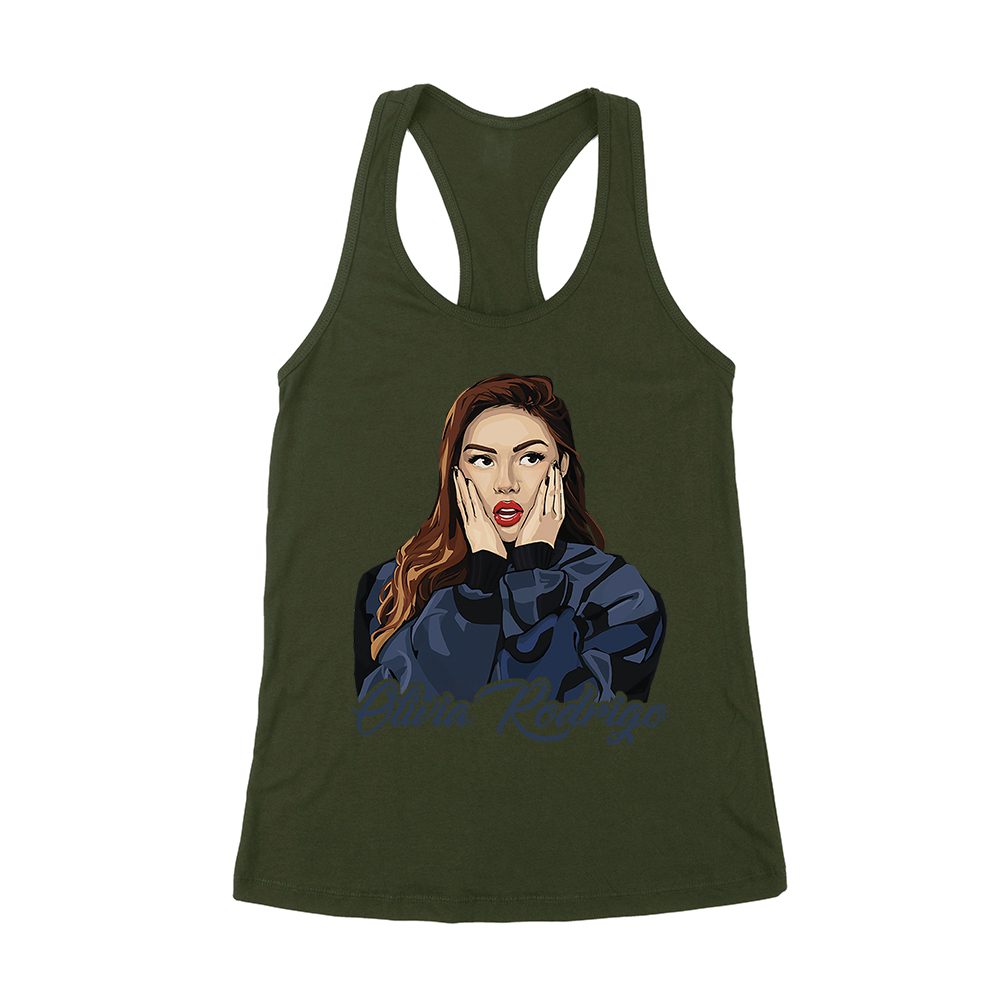 Shocked Expression Olivia Rodrigo T-Shirt with Bold Hoodie Look Women’s Racerback Tank Top