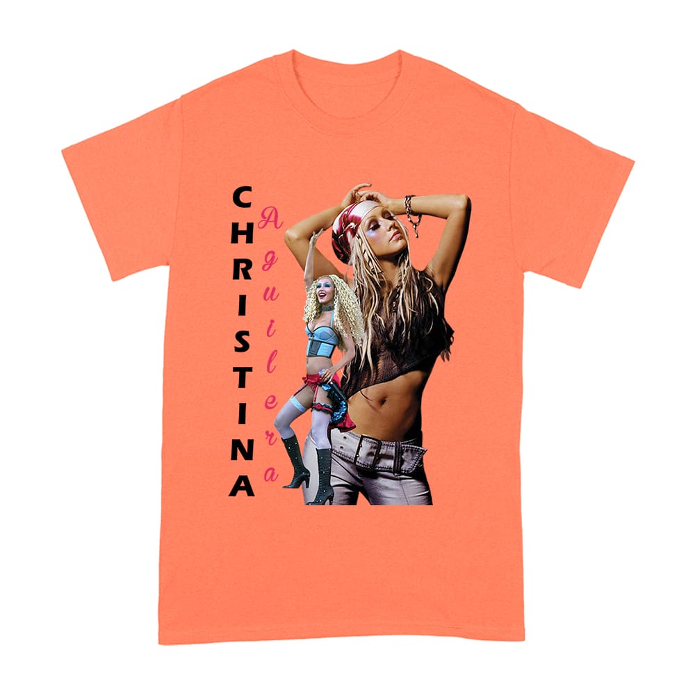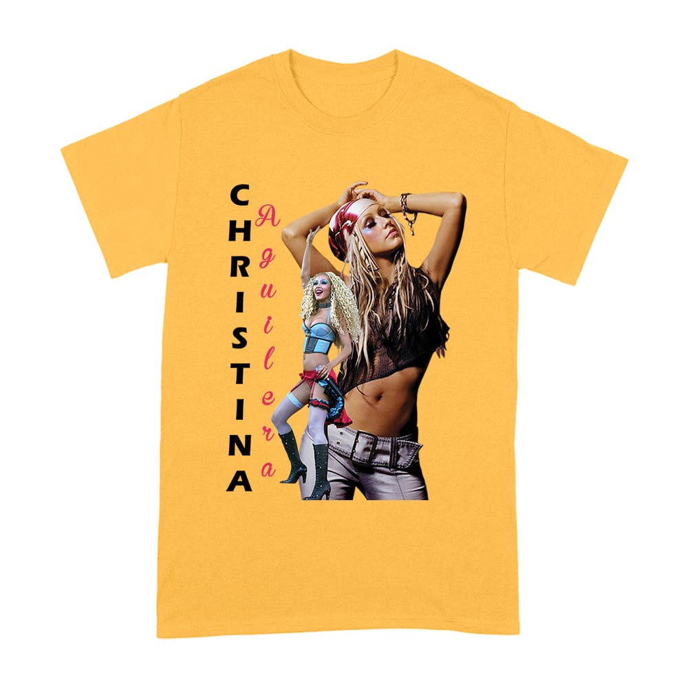 Side Pose Christina Aguilera T-Shirt with Vertical Name Graphic Design Unisex Adult