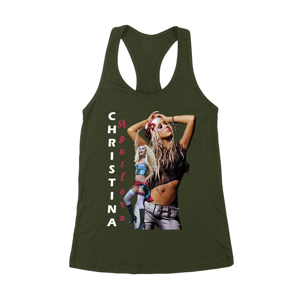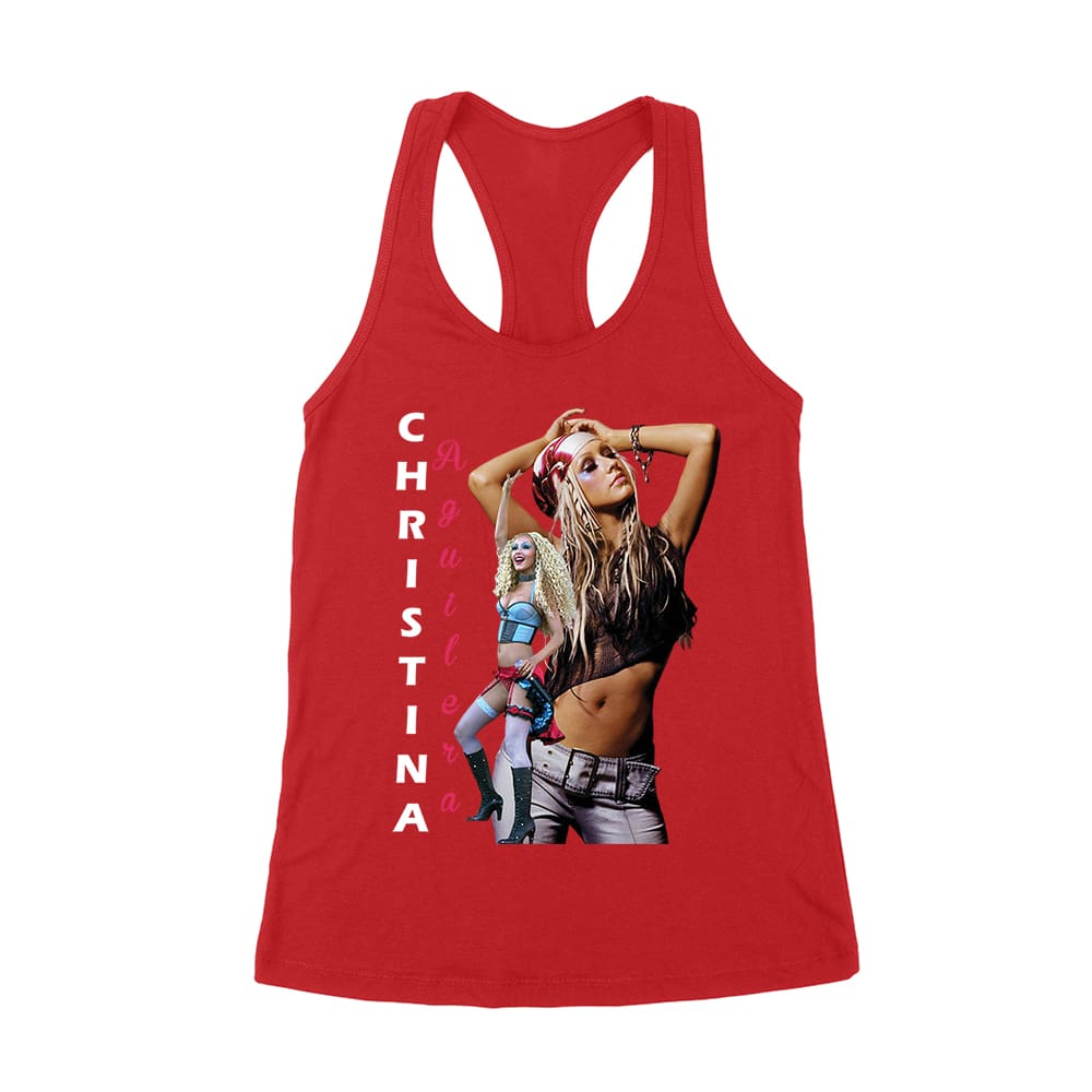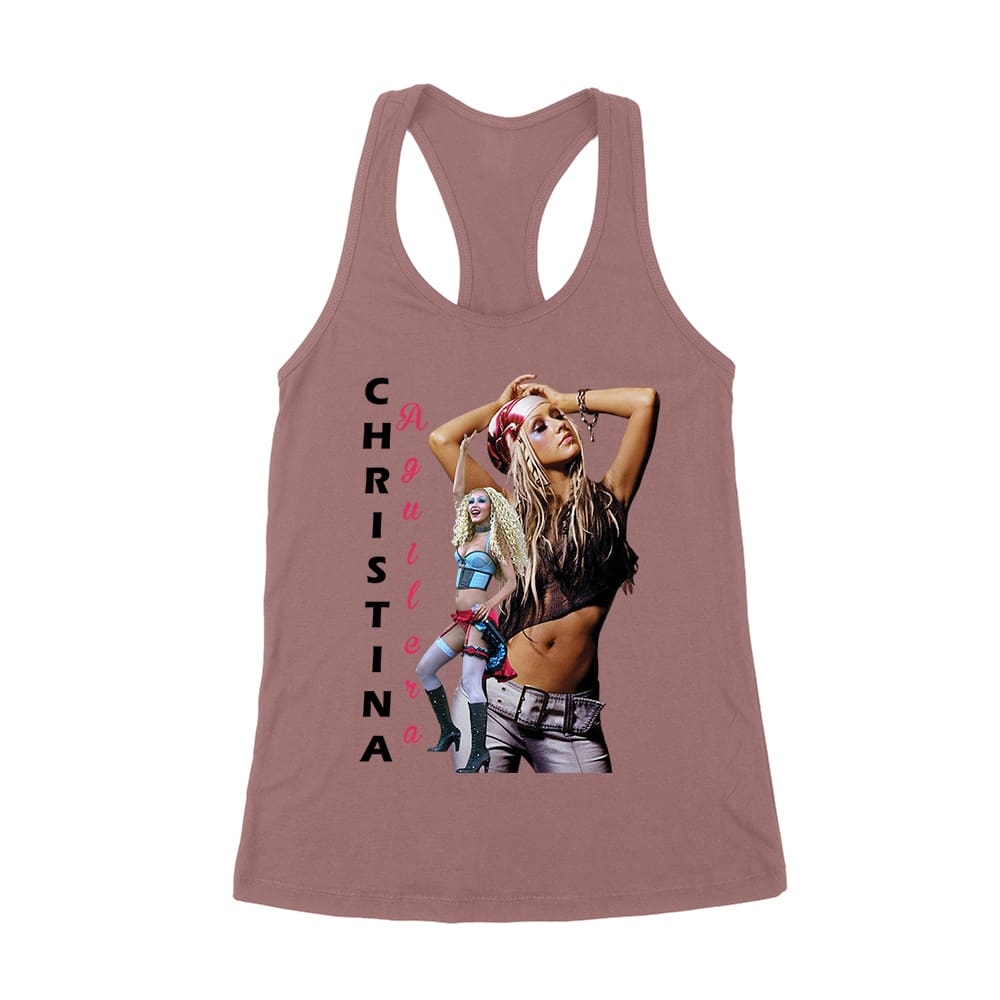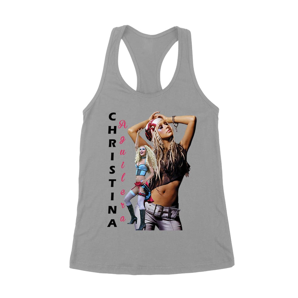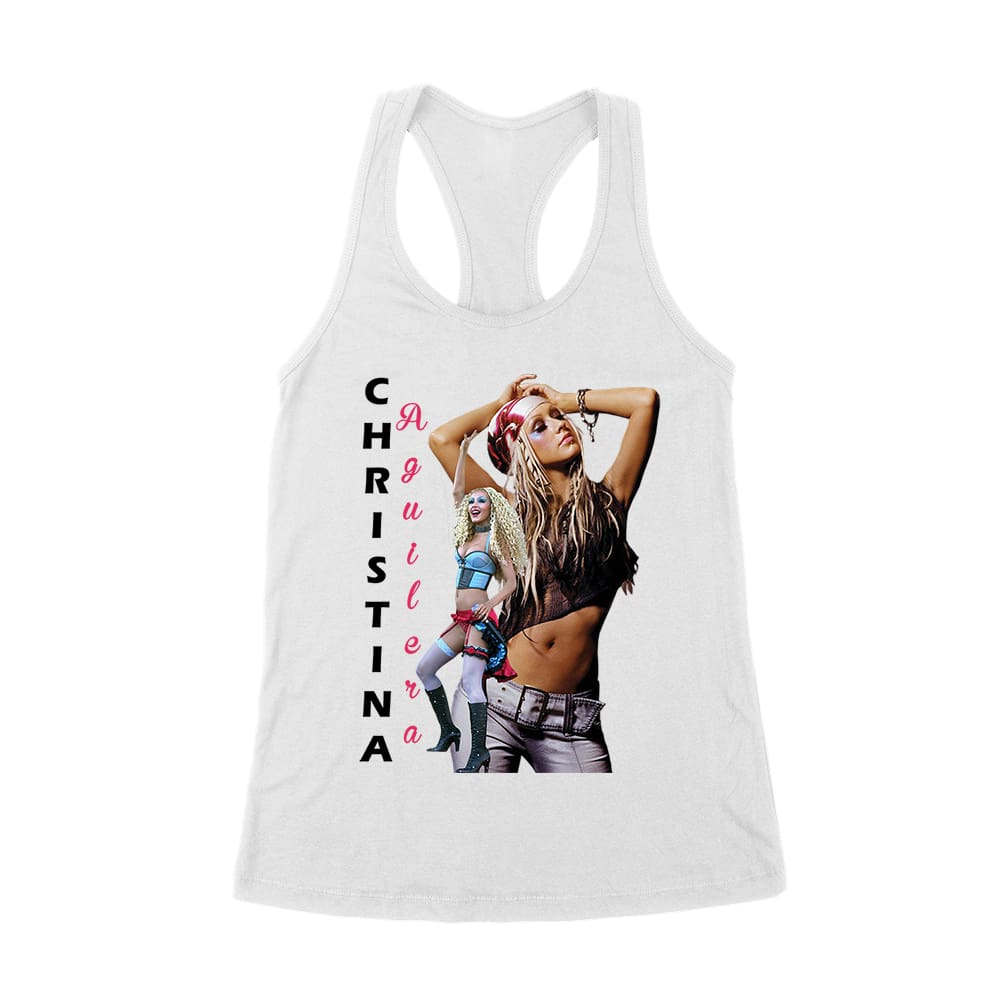 Side Pose Christina Aguilera T-Shirt with Vertical Name Graphic Design Women’s Racerback Tank Top