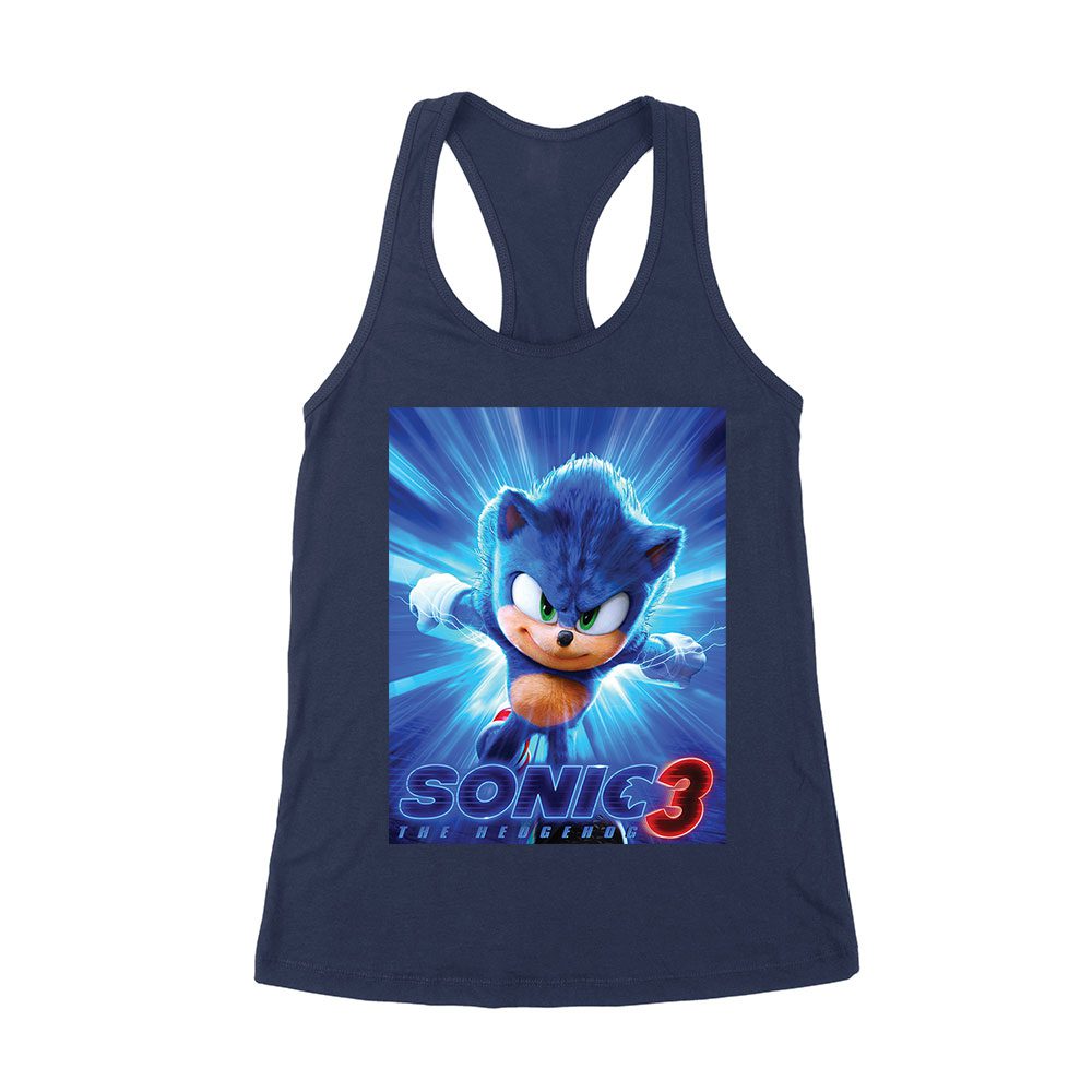 Sonic the Hedgehog Running T-Shirt – Fast-Paced Action Design for Gamers and Animation Fans Women’s Racerback Tank Top