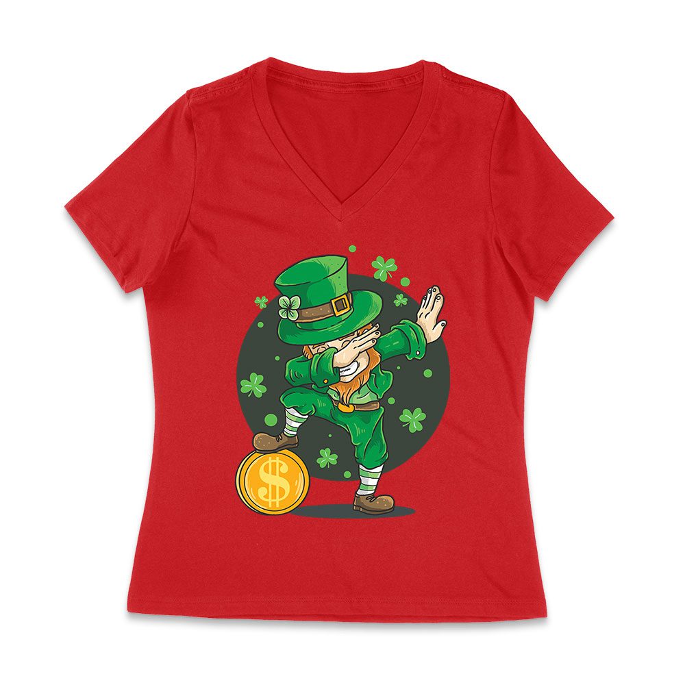 St. Patrick’s Day Dabbing T-Shirt – Funny Irish Shamrock Dance Party Tee Women Jersey V-Neck