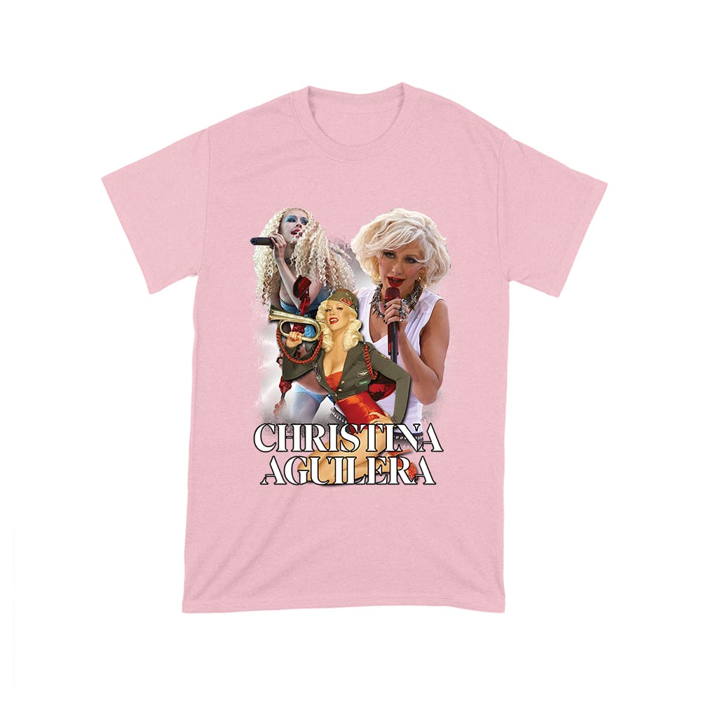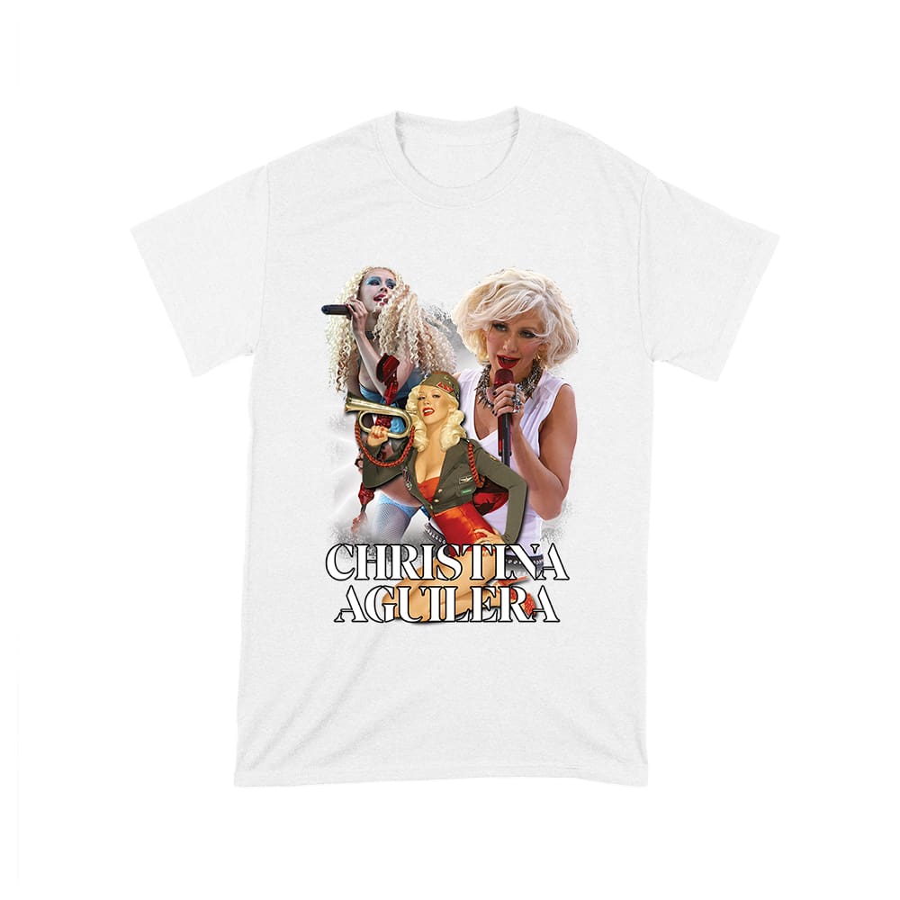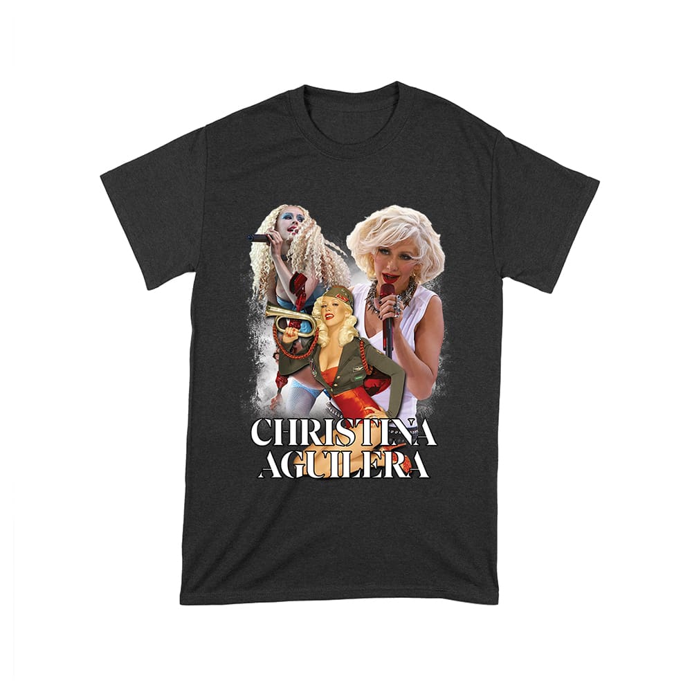 Christina Aguilera performance tee; stage moment collage shirt; dramatic live singing top; pop concert fan T-shirt; iconic diva moments tee; music power shirt :