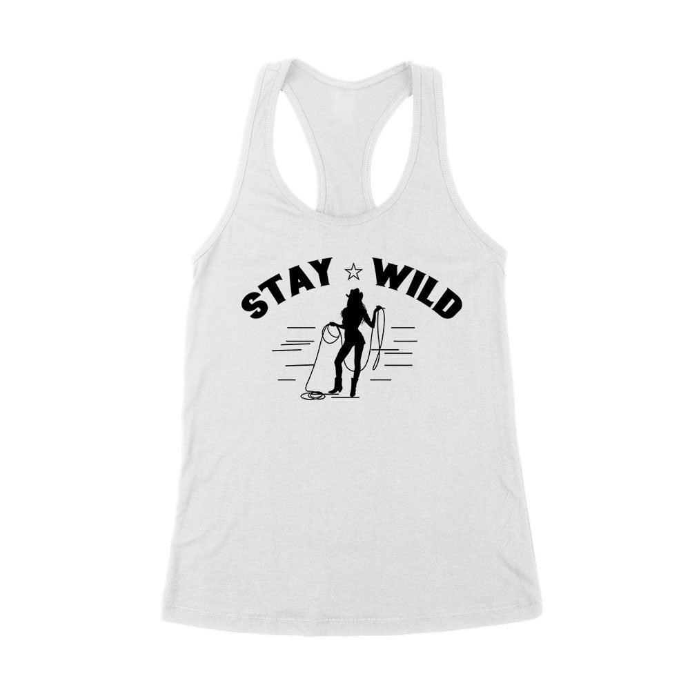 Stay Wild Rodeo T-Shirt – Western Cowboy Horse Riding Tee – Vintage Country Rodeo Graphic Shirt for Men & Women Women’s Racerback Tank Top