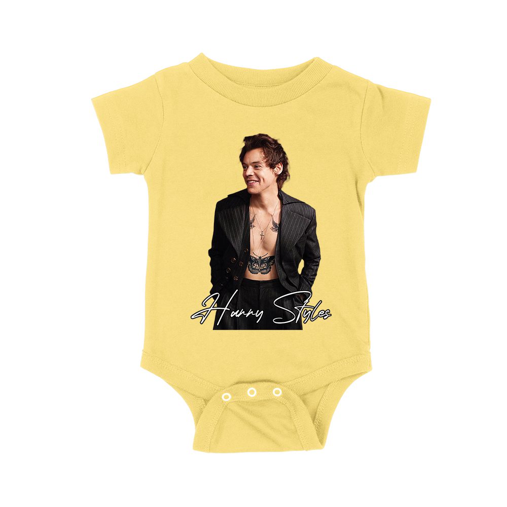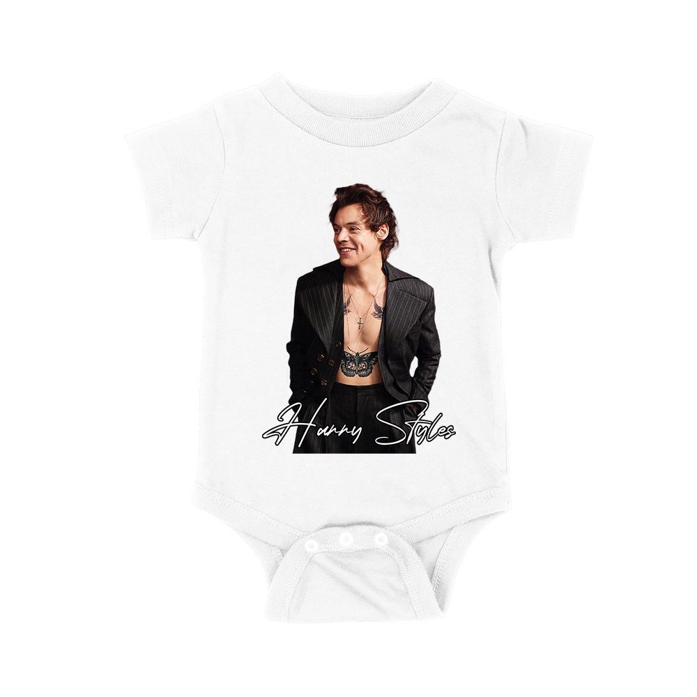 Stylish Black and White Hary-Styls Portrait Graphic Tee for True Fans Unisex Baby Jersey