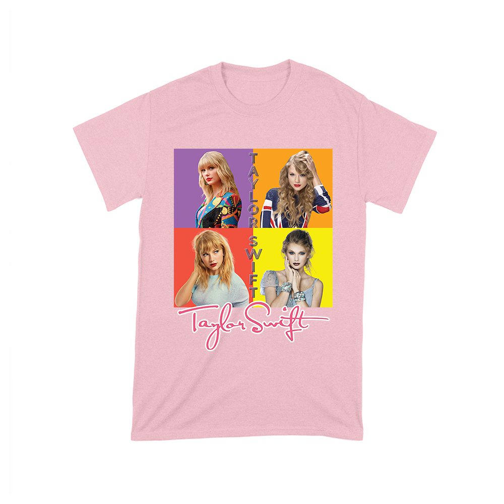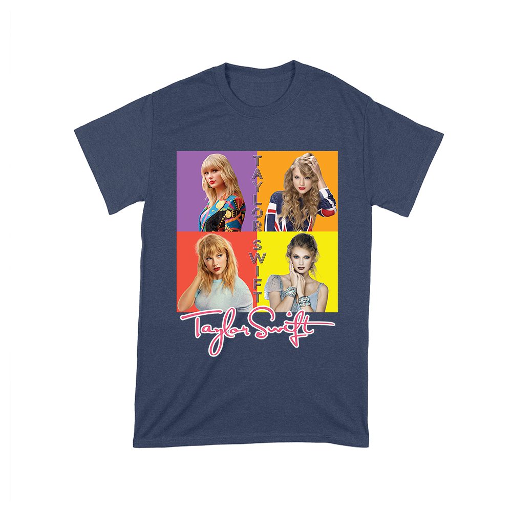 Taylor-Swift t-shirt; pop art tee; colorful block design; modern Taylor shirt; Swift fan tee; music icon graphic; bold portrait shirt; stylish pop tee; artistic fanwear; Swift color theme shirt — perfect for birthdays, parties, and celebrations.
