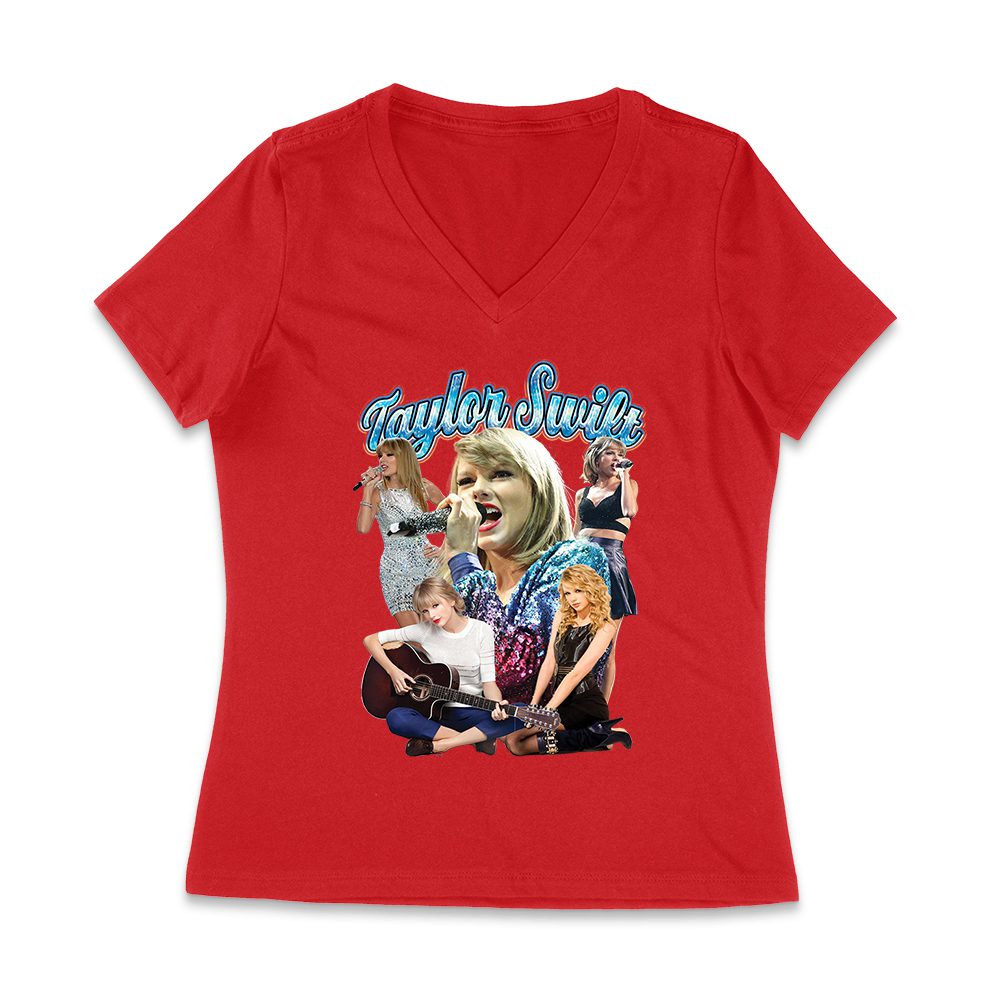 Taylor-Swift Singing Moments Collage Graphic T-Shirt Women Jersey V-Neck