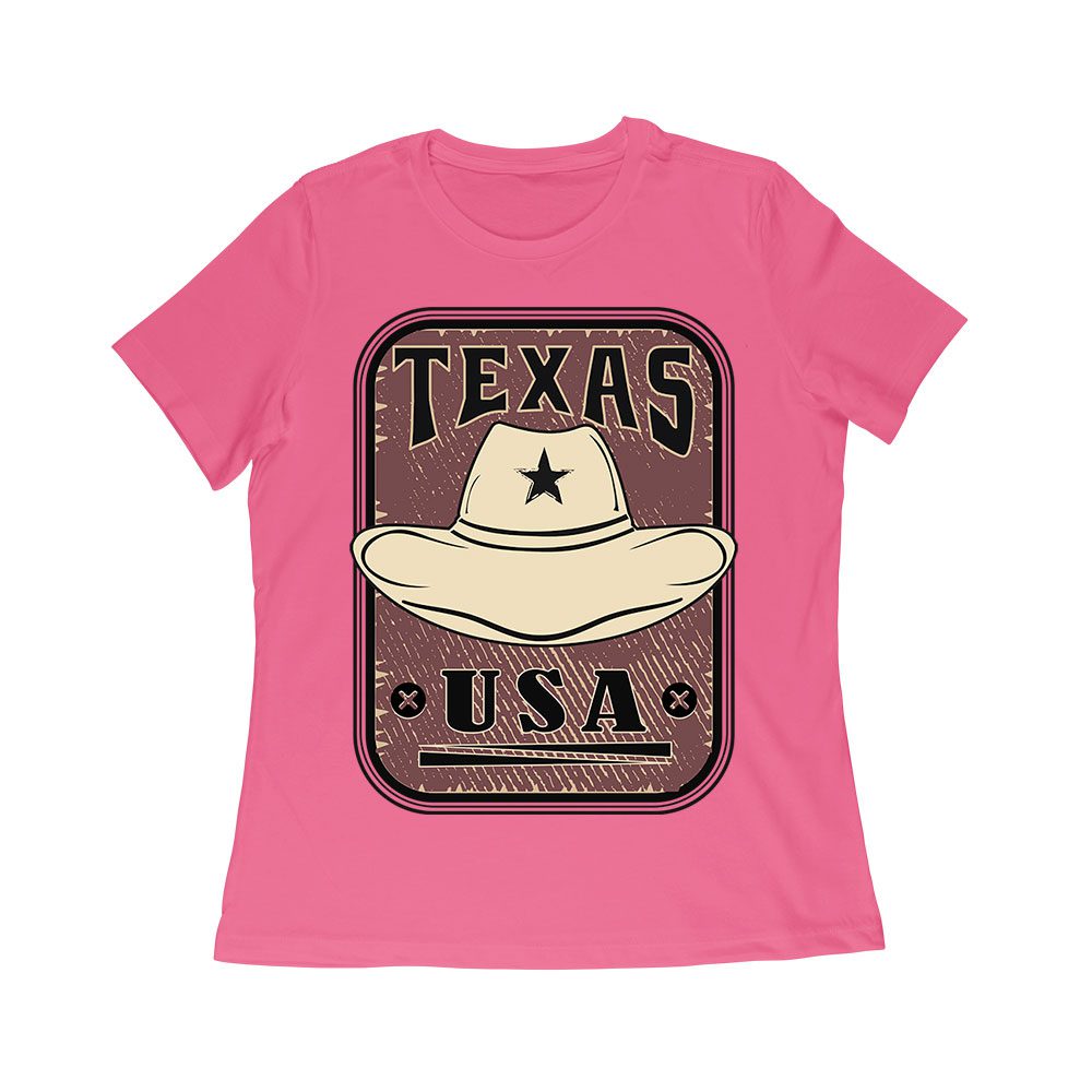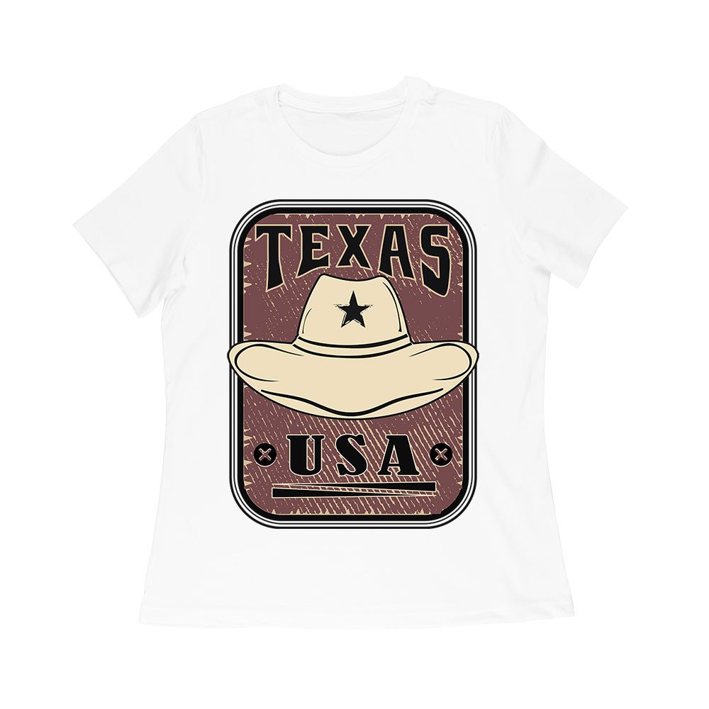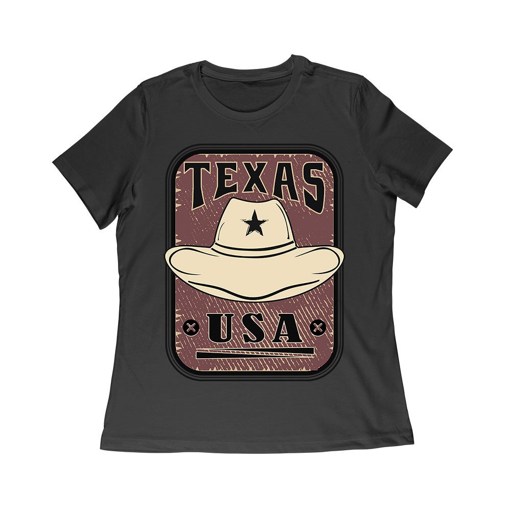 Texas USA Cowboy Hat Design – Vintage Western Style T-Shirt for Texas Pride and Souvenir Lovers Women Relaxed