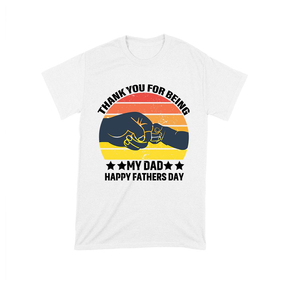 Fathers day; thank you dad; happy father’s day; sunset design; retro dad shirt; fist bump silhouette; circle vintage design; father gratitude; striped retro background; dad and son; love dad message — perfect for birthdays, parties, and celebrations.
