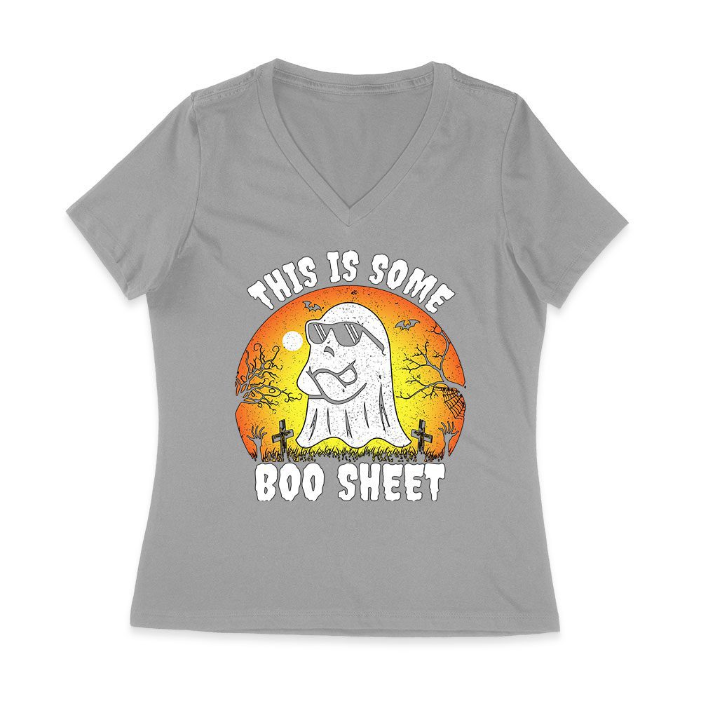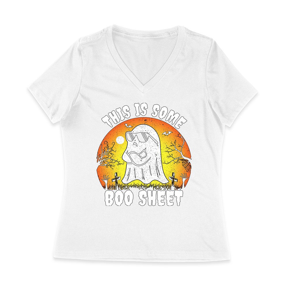This is Some Boo Sheet – Ghost with Sunglasses Halloween Tee Women Jersey V-Neck