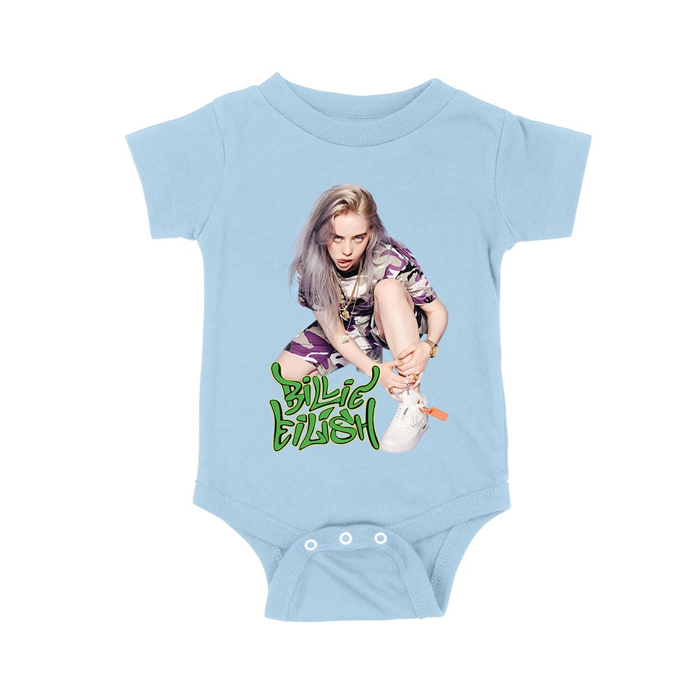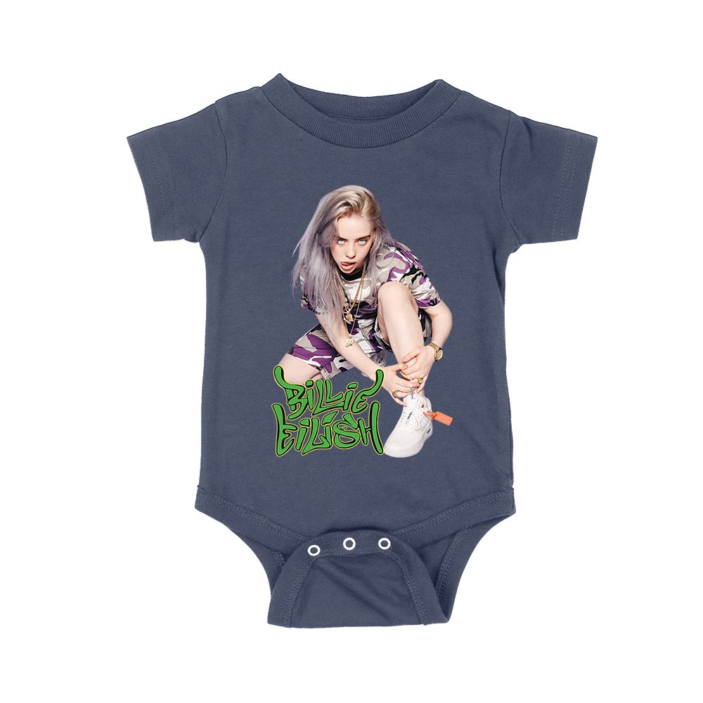 Urban Style Billie Eilish Sitting Pose Green Graffiti T-Shirt Unisex Baby Jersey