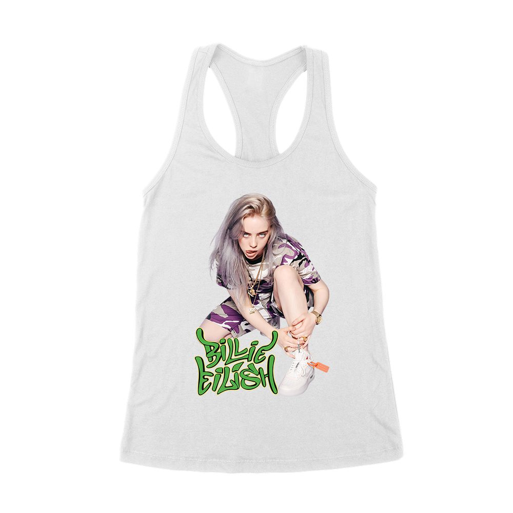 Urban Style Billie Eilish Sitting Pose Green Graffiti T-Shirt Women’s Racerback Tank Top