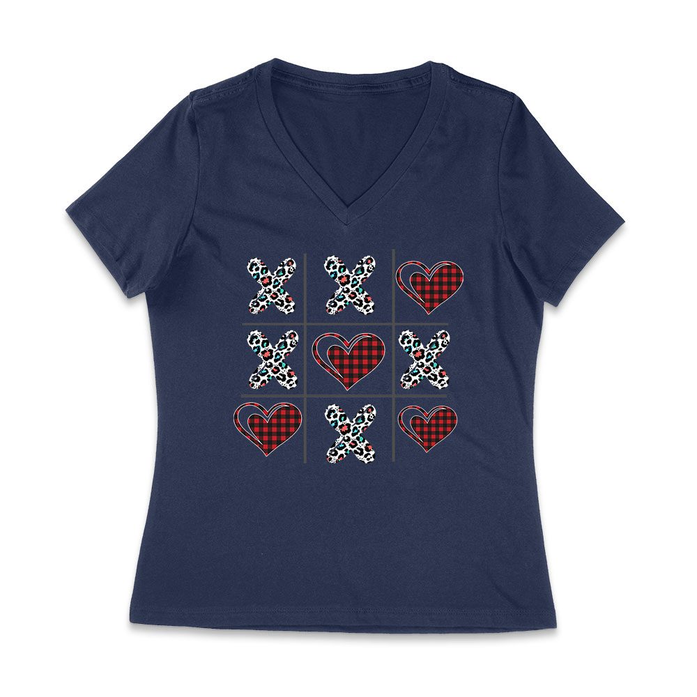 Valentine’s Day T-Shirt ? Plaid Hearts & Leopard Print XO Design, Cute Romantic Gift for Couples Women Jersey V-Neck