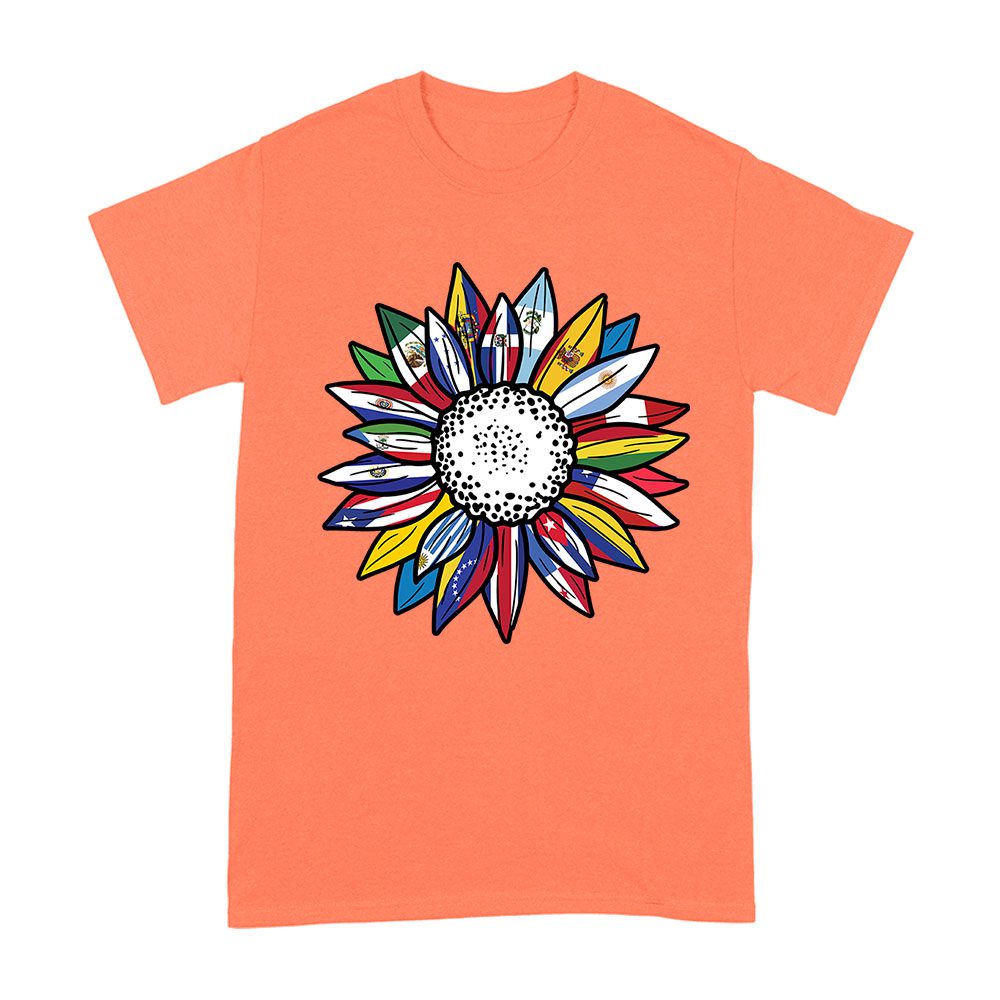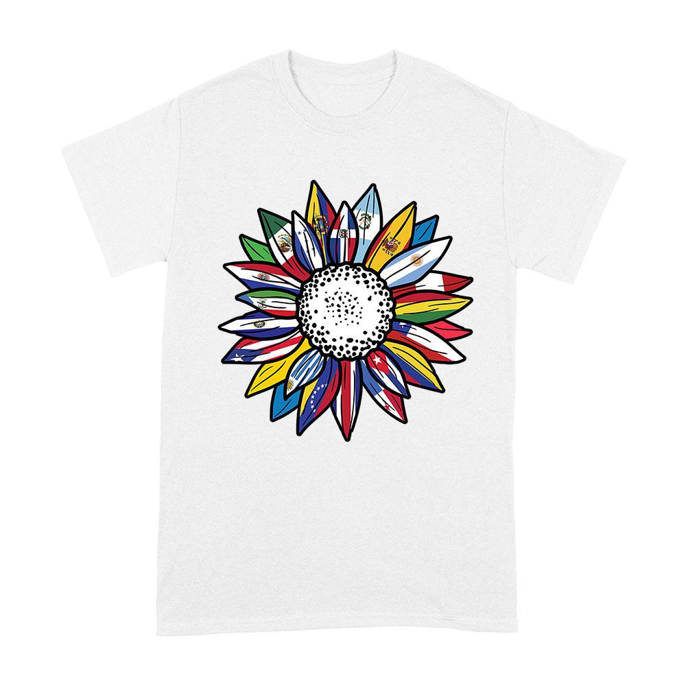 Vibrant Hispanic Heritage Month T-Shirt: Flower Design with Country Flags Unisex Adult