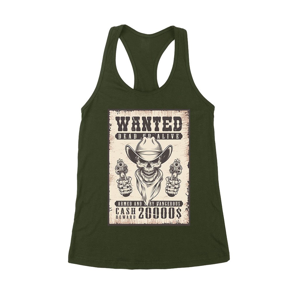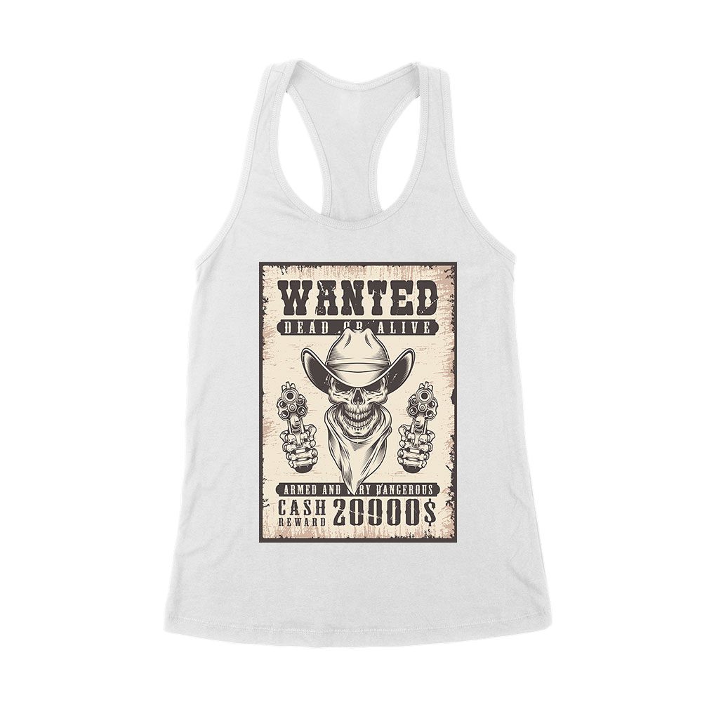 Wanted Dead or Alive T-Shirt – Armed and Very Dangerous – Cash Reward $20,000 – Bold Western Graphic Tee – Cowboy Wanted Poster Design Women’s Racerback Tank Top