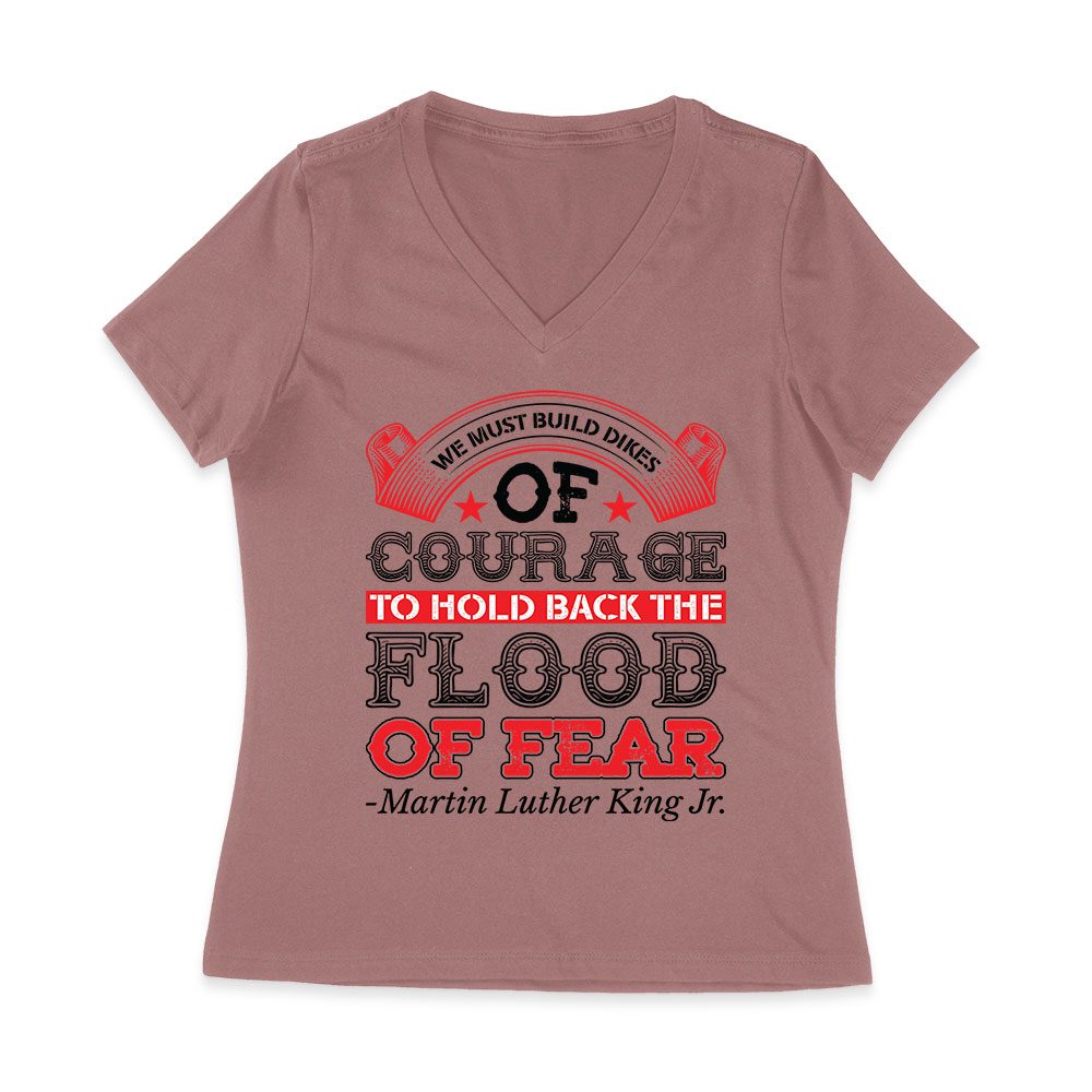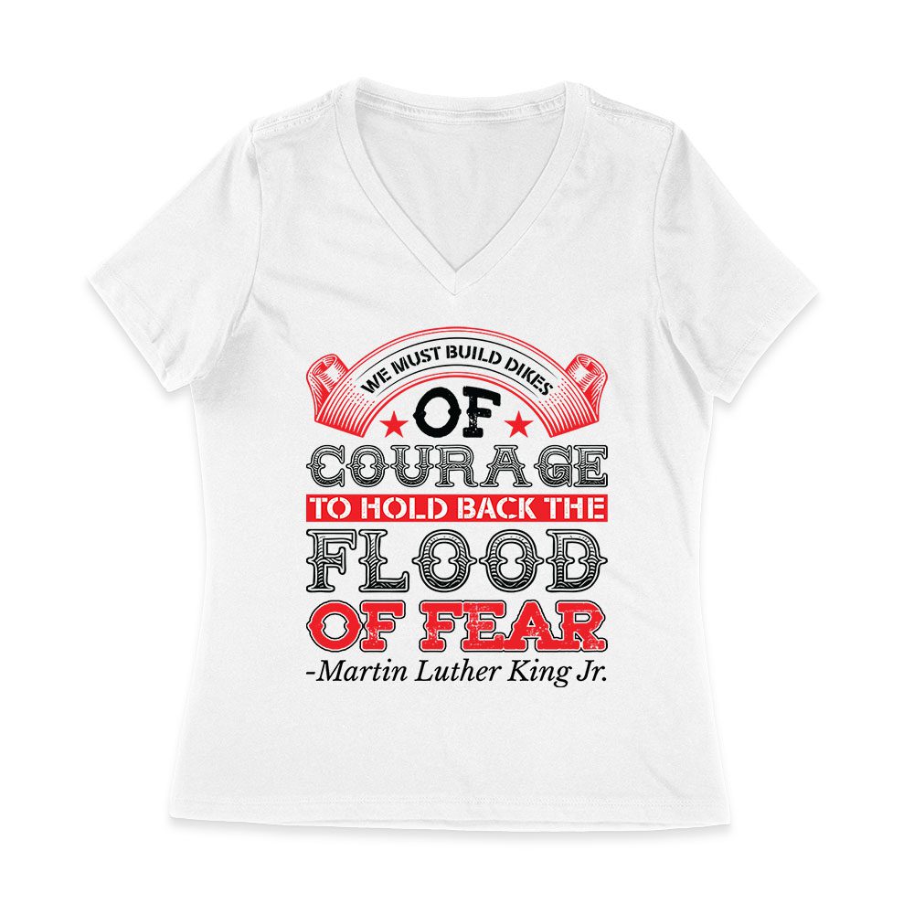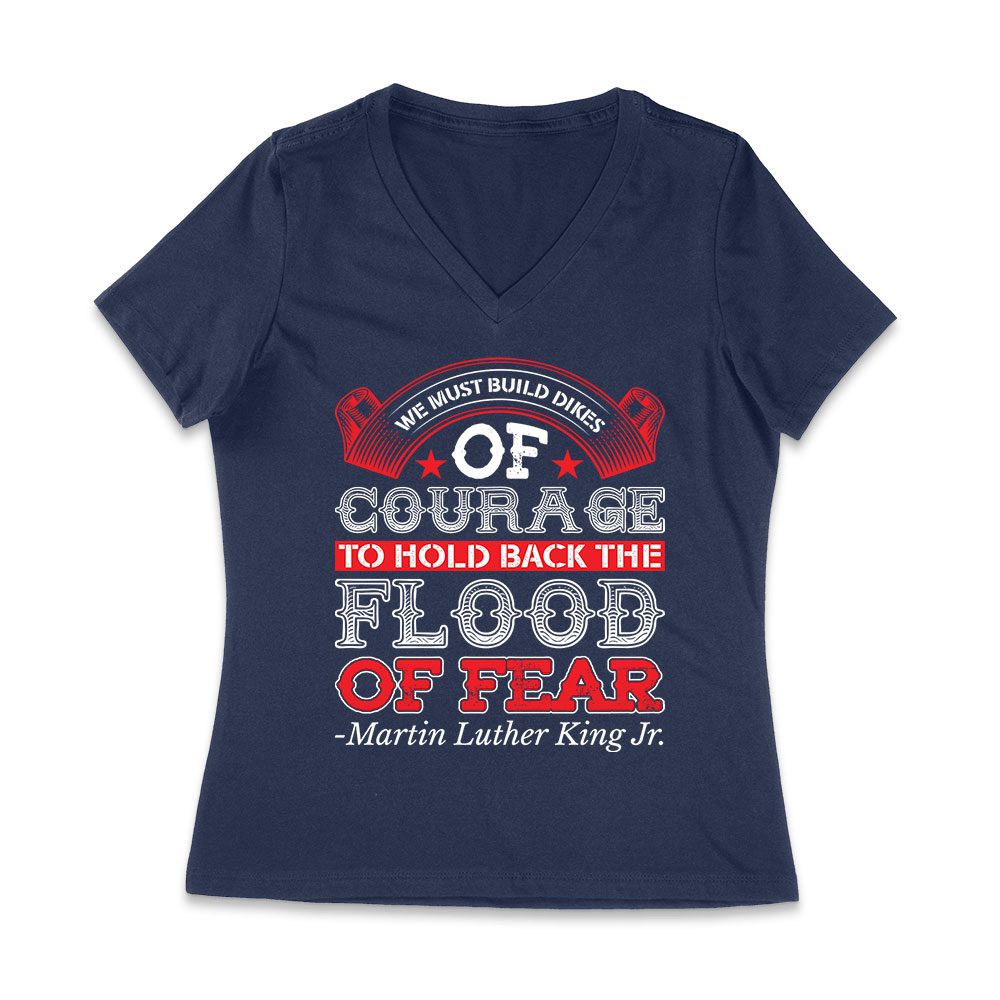 We Must Build Dikes of Courage T-Shirt – Inspirational Quote for Overcoming Fear Women Jersey V-Neck