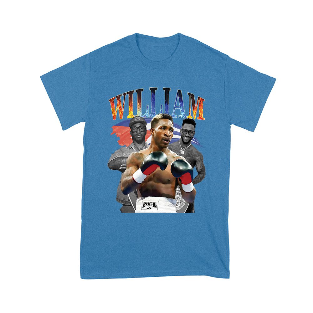 william scull; cuba flag tee; image collage; boxing fan tee; patriotic shirt; cuban fighter; bold design; match night tee; sports apparel; combat shirt; athlete wear; fan graphic tee; fight night gear — perfect for birthdays, parties, and celebrations.