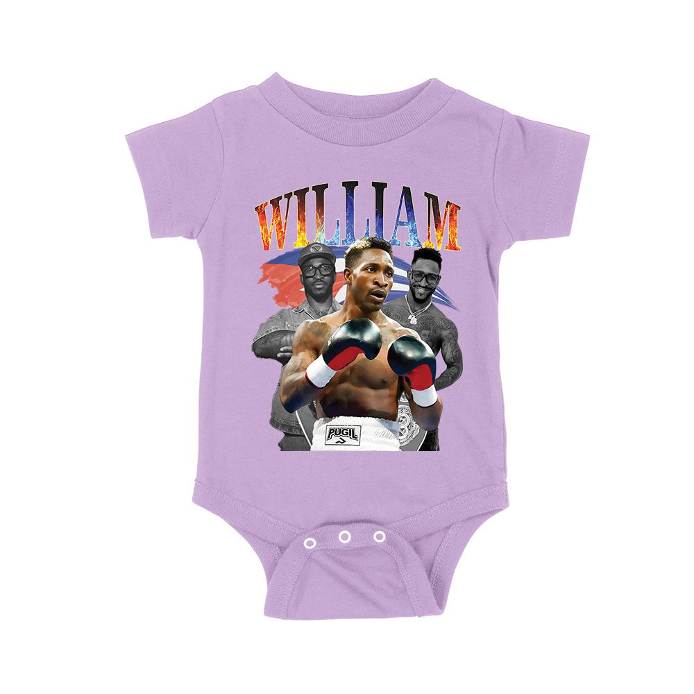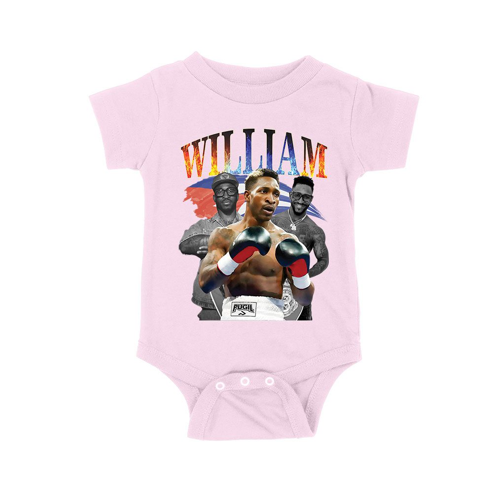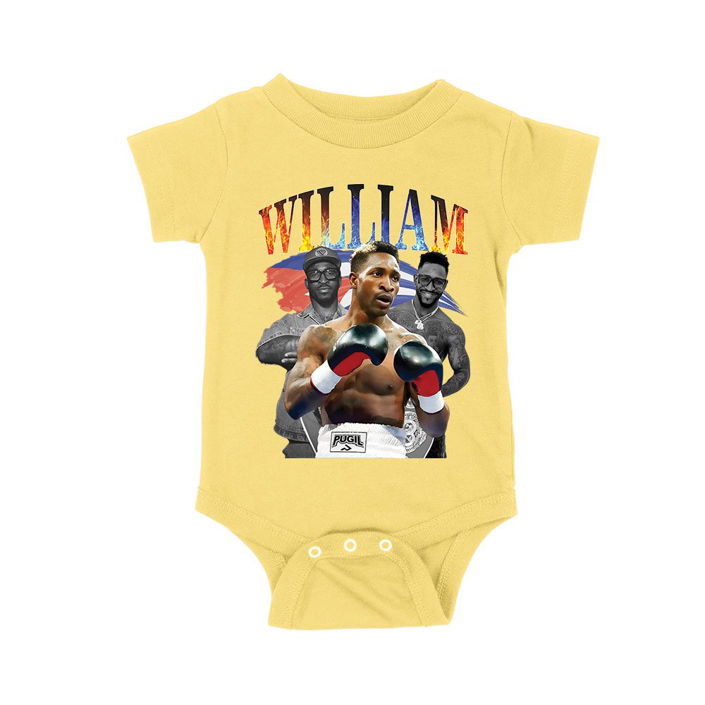 William Scull Collage T-Shirt – Cuba Flag Background Boxing Fan Tee with Bold Graphic Design Unisex Baby Jersey