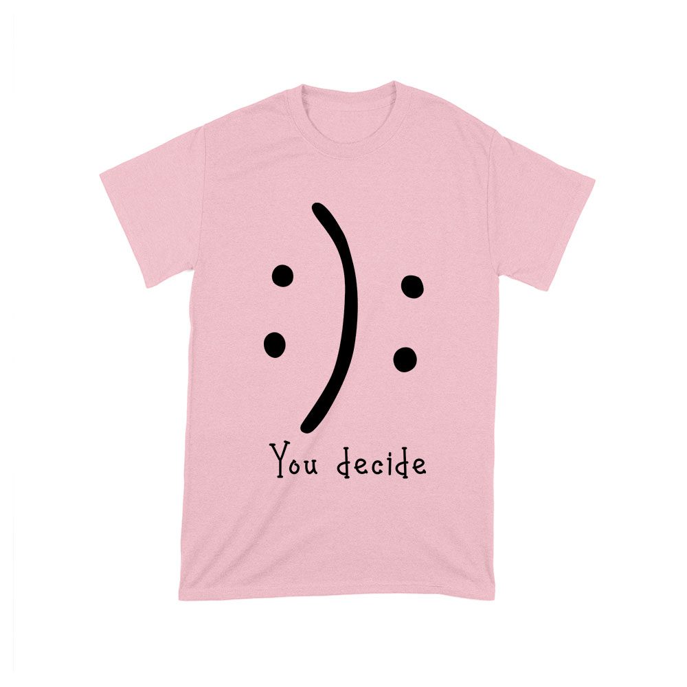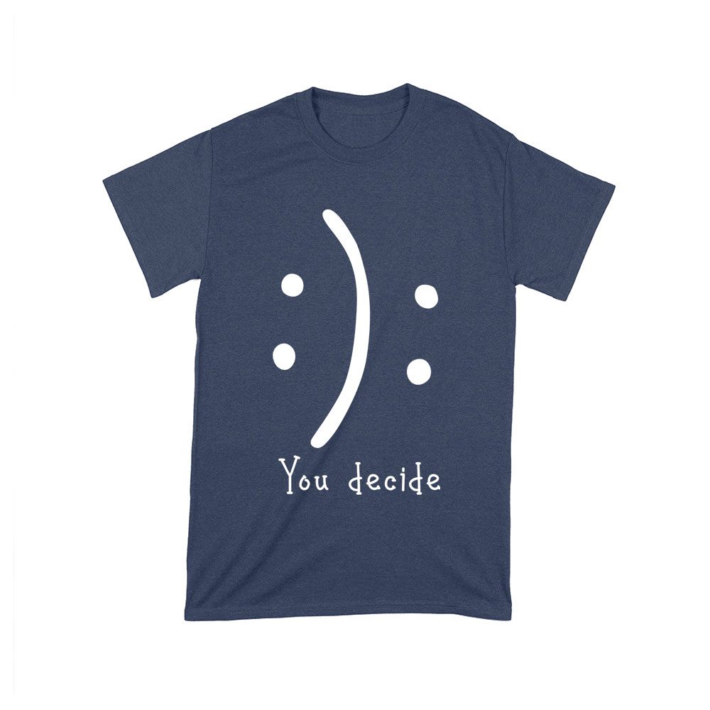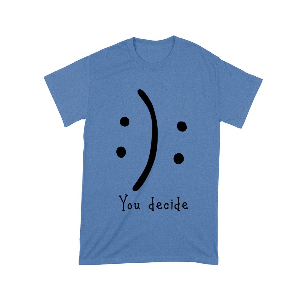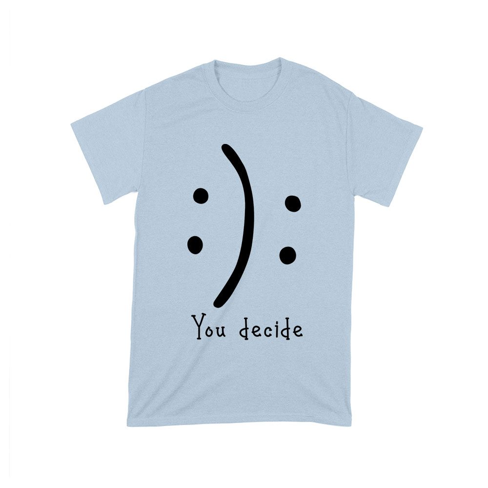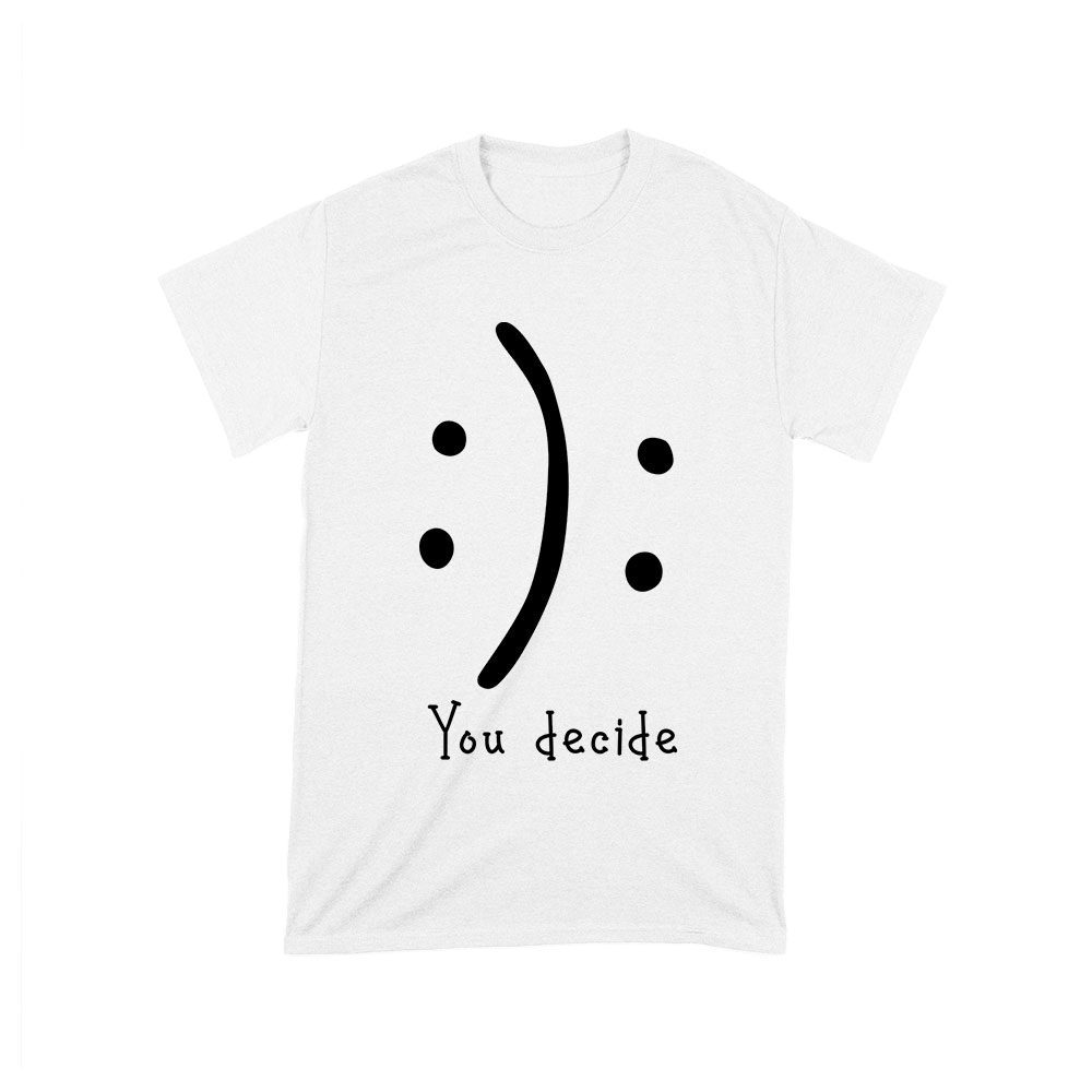 You decide, emoticon shirt, choose your mood, inspirational T-shirt, positivity graphic, funny face tee, choose happiness, mood selection shirt, uplifting design, simple graphic tee: