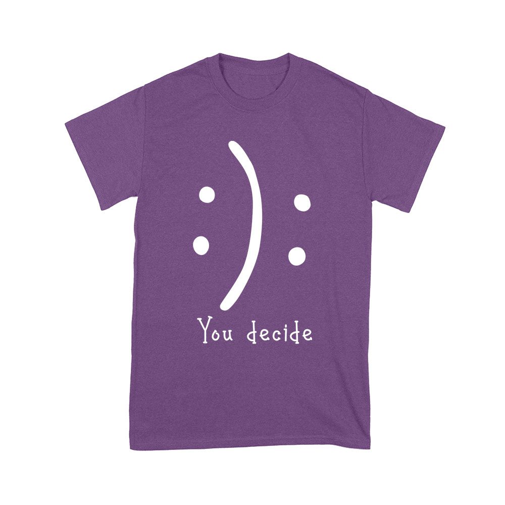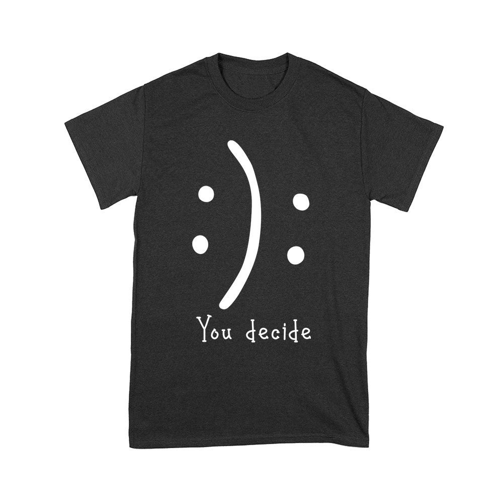 You decide, emoticon shirt, choose your mood, inspirational T-shirt, positivity graphic, funny face tee, choose happiness, mood selection shirt, uplifting design, simple graphic tee: